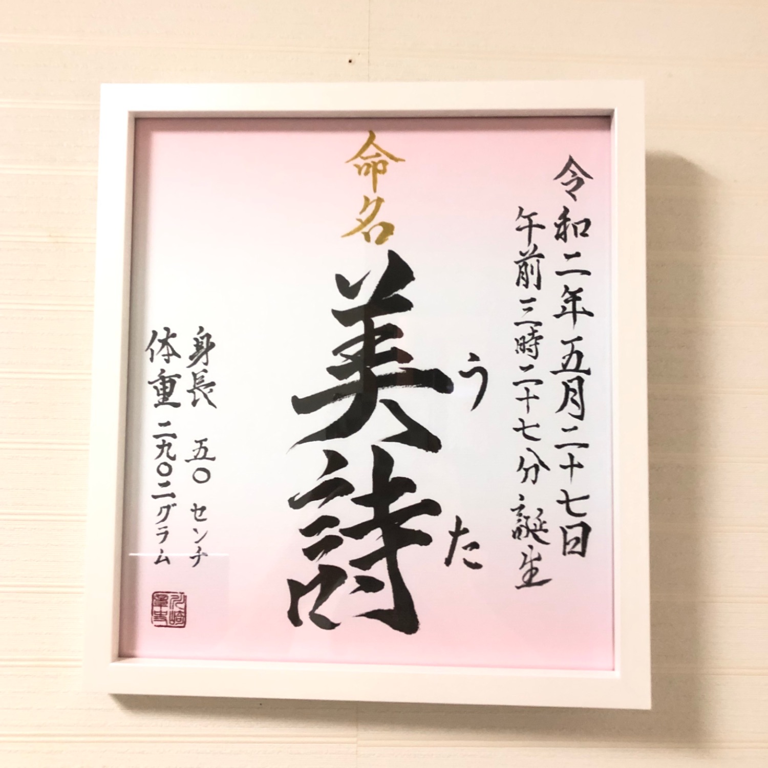命名書。最高な額縁には最高の作品を入れて飾るのが本当に最高です!