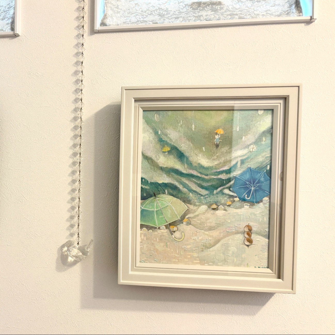 絵の雰囲気と壁の色を考慮して、白い額縁を購入させていただきました。 クリーム色に見えるのは、部屋の照明が黄色いせいです笑 油絵額縁 7753 UVアクリル付/220×273(F3)/ホワイト 絵にも壁にも合っていてピッタリ。別のオーダーしていただいた額縁の隣に並べて飾っています。 このくらいのサイズの額縁はあまり重くないですし、扱いやすくていいですね!