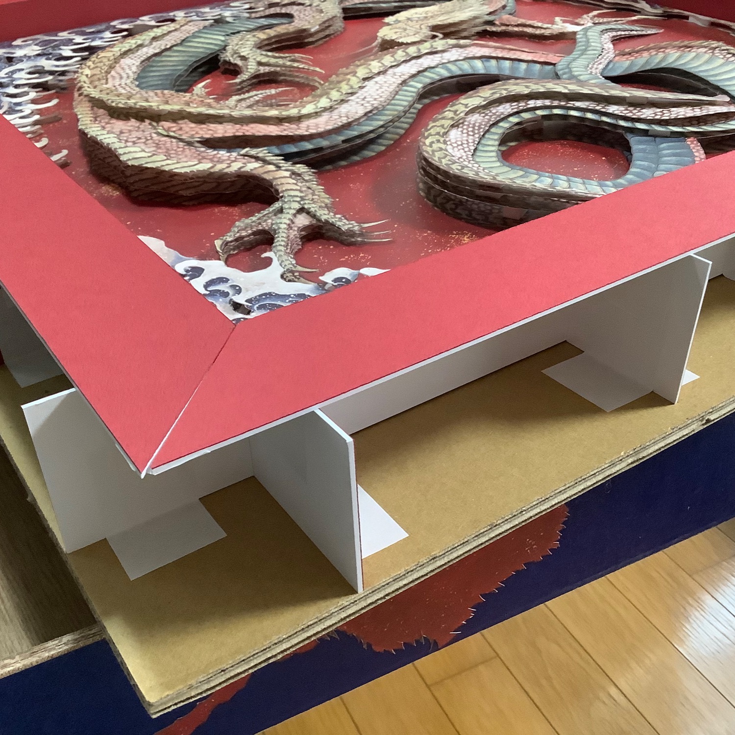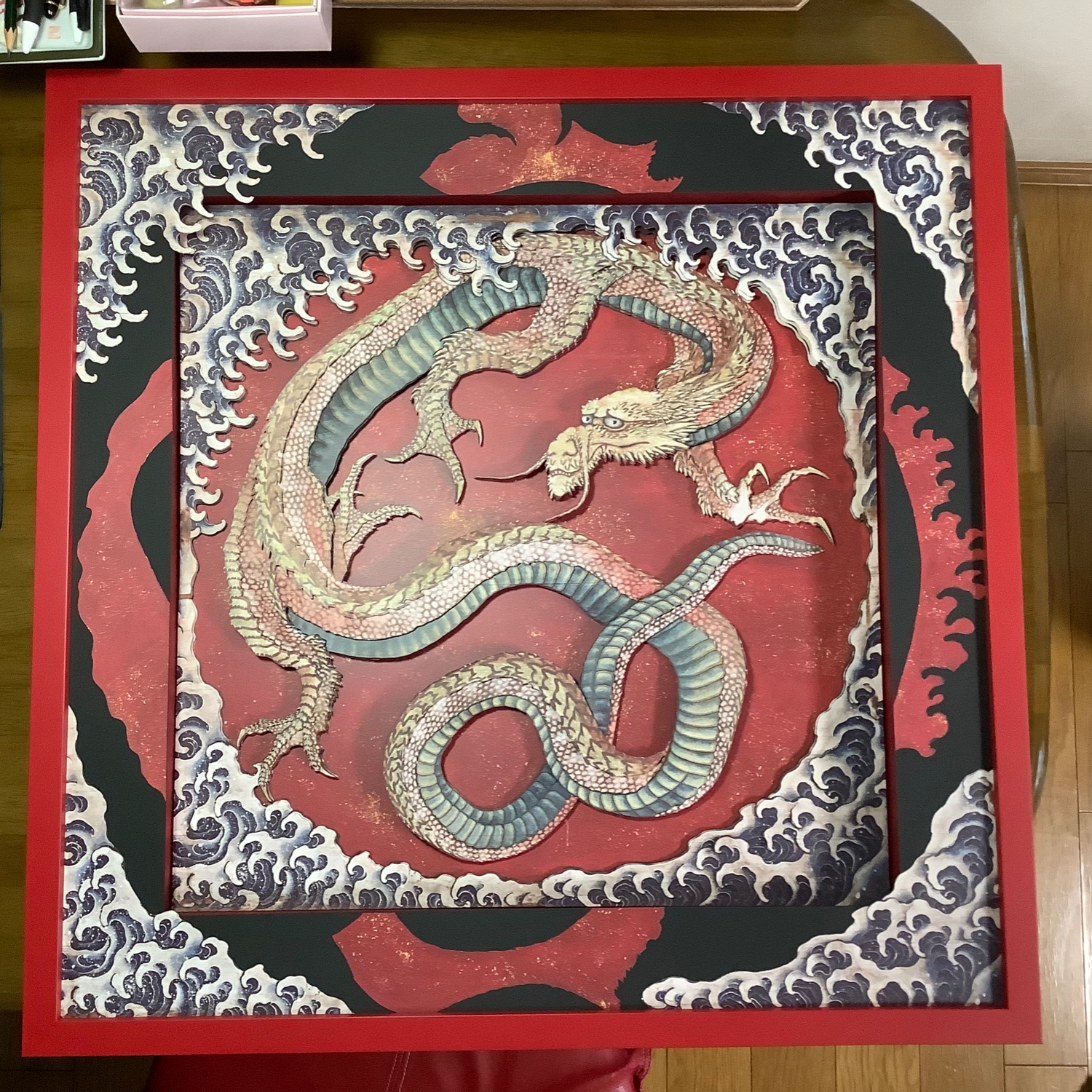 葛飾北斎、祭り屋台天井絵「龍」図のシャドーBOXです。平面のポスターより、龍の迫力が一層増しました。改めて3Dを平面に落とし込んで描く北斎の描写の確かさが良く分かりました。
