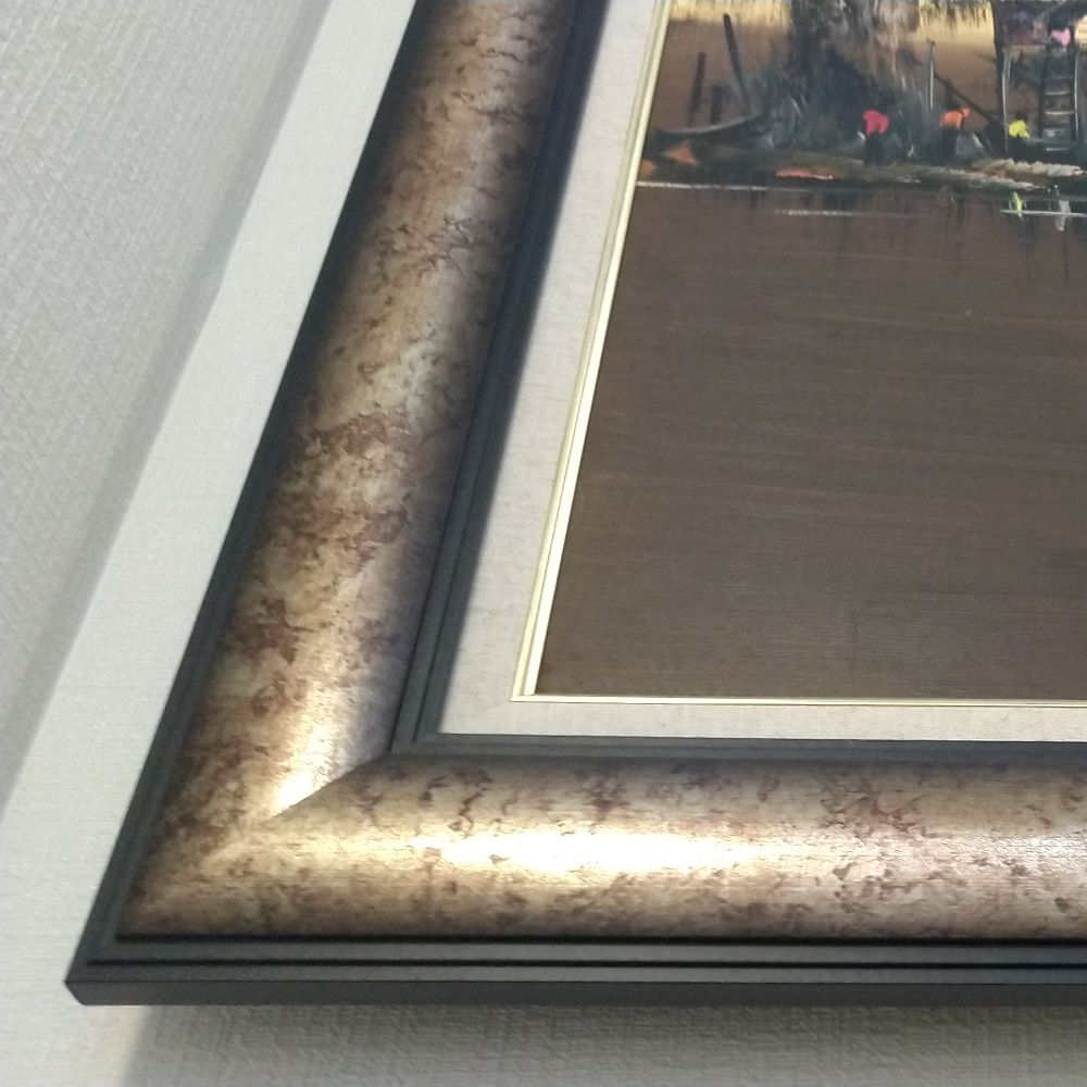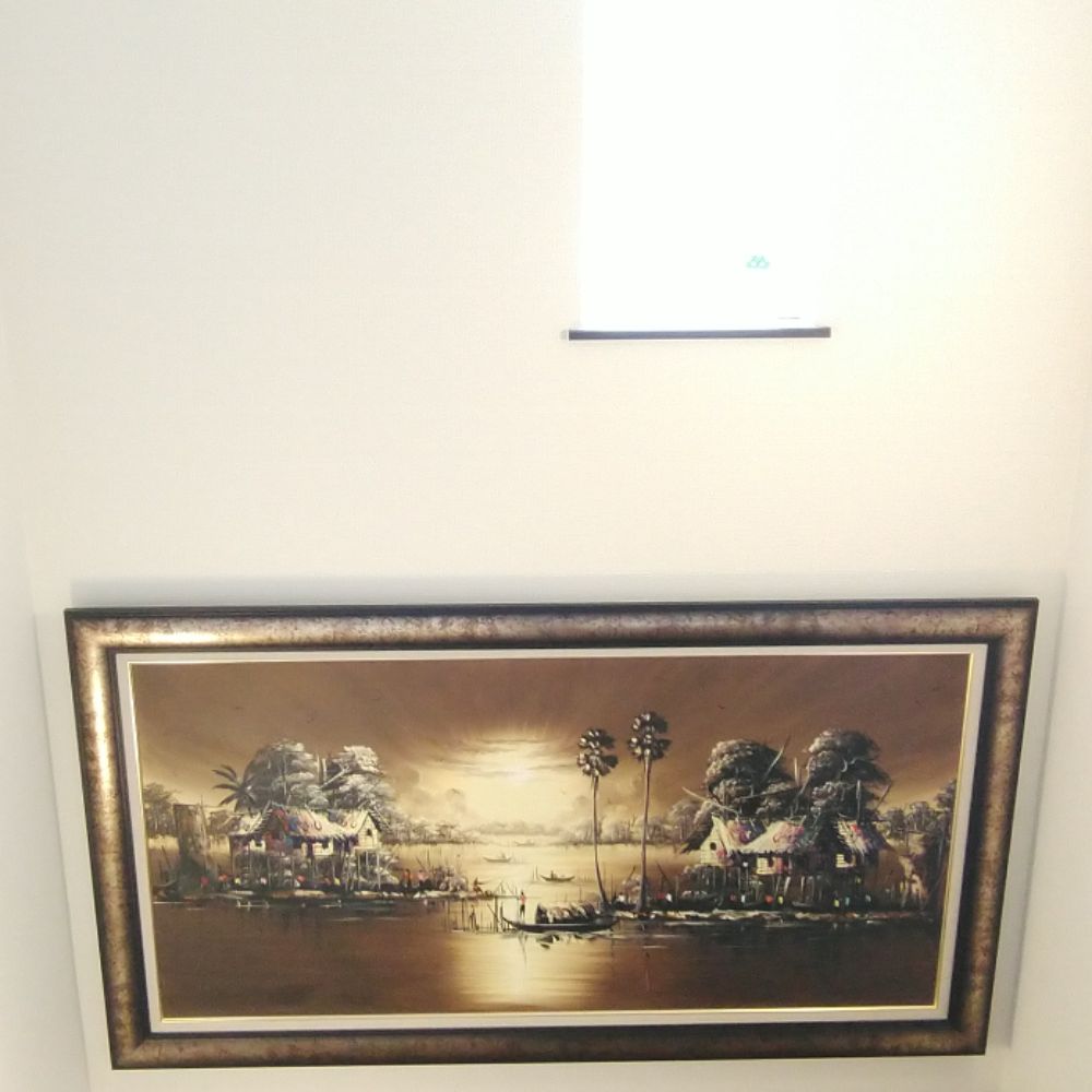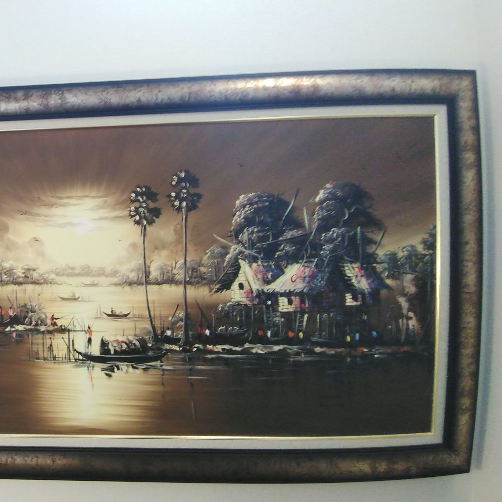 海外旅行で購入した油絵、帰国後自宅で飾る場所探しに苦労しましたが、1560mm✕880mmのオーダーメイドで仕上げていただきました。