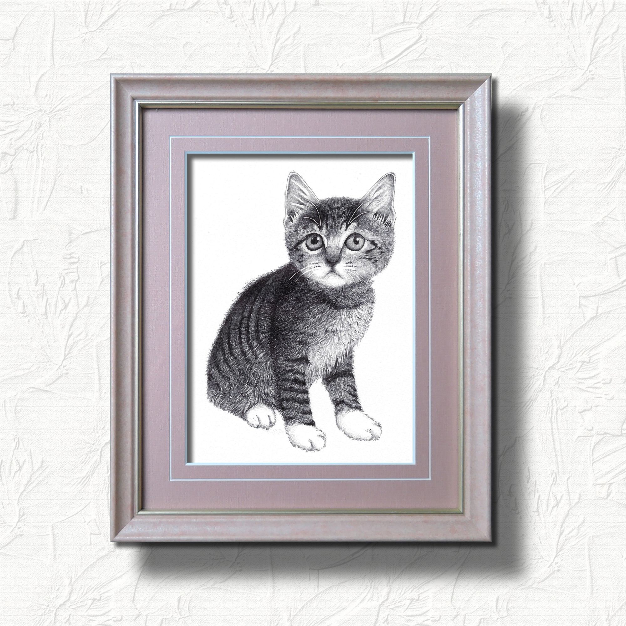 自作アニメーションに登場する子猫のボールペン画です。あどけない表情にマッチする額がいいなと思い、優しいピンクのものを選びました。