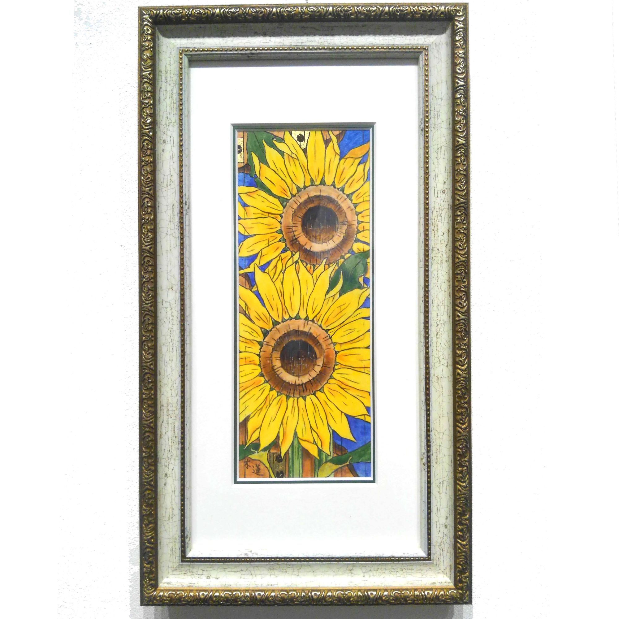 奥行きと差し色が楽しめるダブルマット仕様!アンティーク調のフレームも相まって、作品の魅力を更に引き立てています🌻鮮やかな黄色と青のコントラストが美しいですね✨