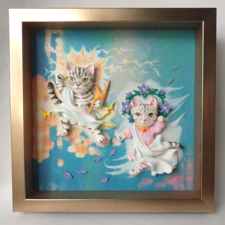 シャンパンゴールドの立体額を使いました。品の良い輝きが作品を引立ててくれています。