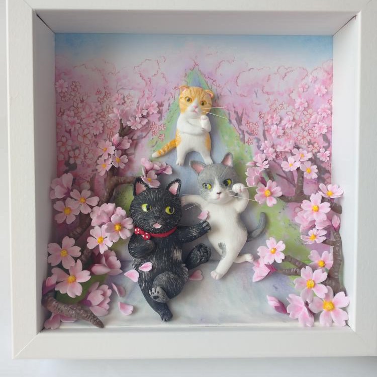 白い立体額の中に、作品を作り込みました。厚みがあるので、奥行きや遠近感も表現できて良かったです。