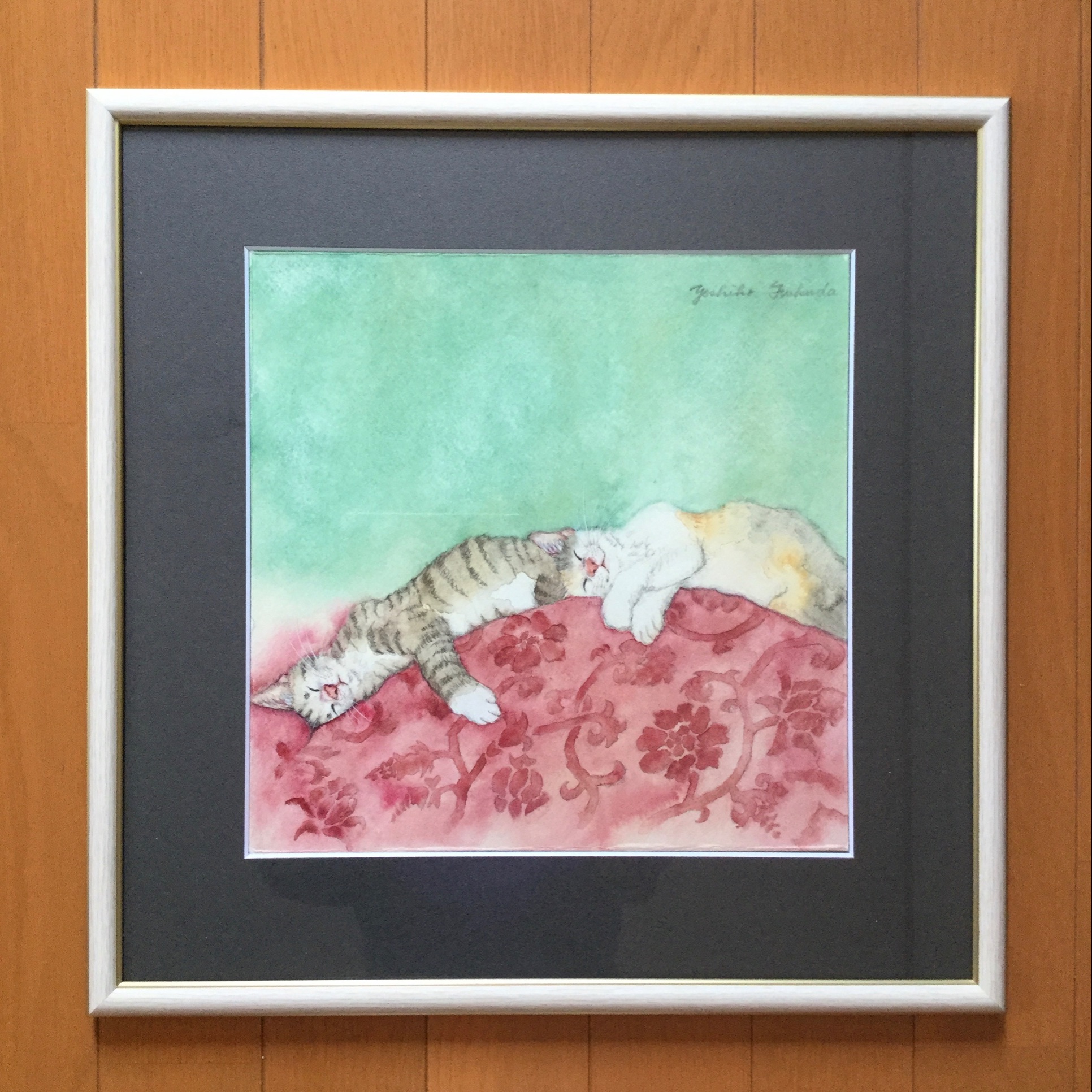 この度は当店をご利用いただきまして誠にありがとうございました。今までは破棄されていたとのことですが、猫ちゃん達の豊かな表情が描かれている、とても素敵な作品だと感じました。飾ることで、より作品への愛着が沸くと思いますので、また額装されたい作品がございましたら、いつでもご相談ください!
