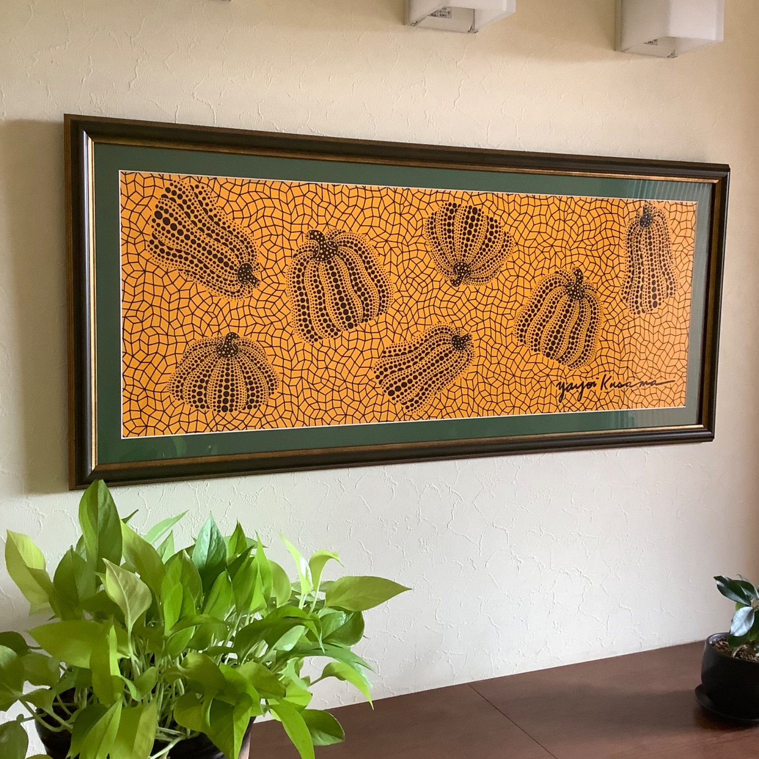 草間彌生の手ぬぐいを額装して頂きました。玄関に飾る物を探していて、友人宅にて同様に額装した手ぬぐいを見て、真似させてもらいました。一気に玄関が明るくなり大満足です。