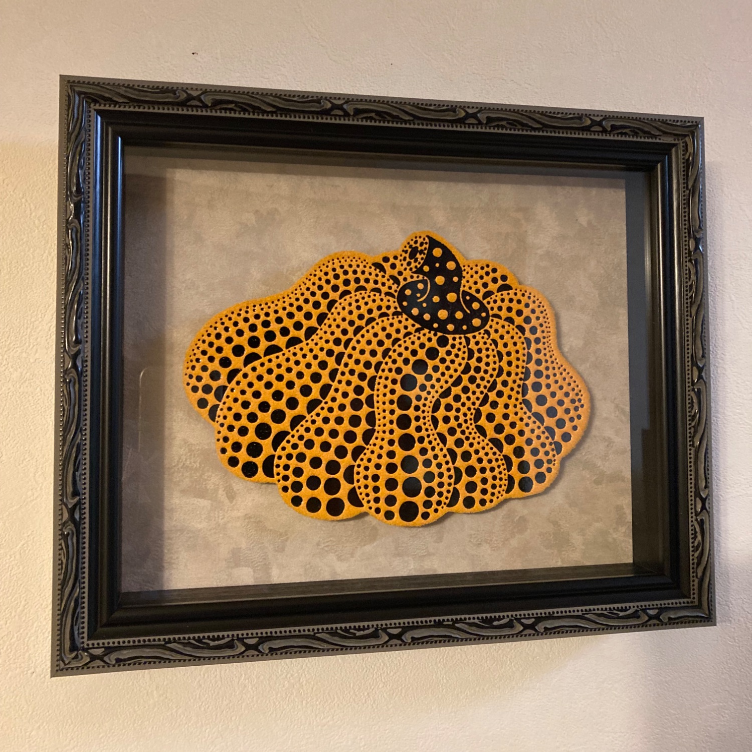 こちらの草間彌生のポストカードはかぼちゃを模した形状をしているので、立体額に浮かせて額装することで、作品の魅力がさらに引き立ちますね。可愛らしい仕上がりにご満足いただけて嬉しいです。ありがとうございました。