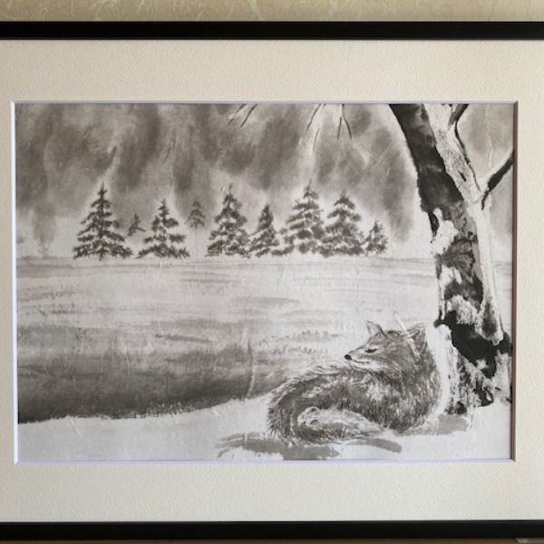 水墨画の風景です。マットをブラックに変えるのも良いかもしれません。