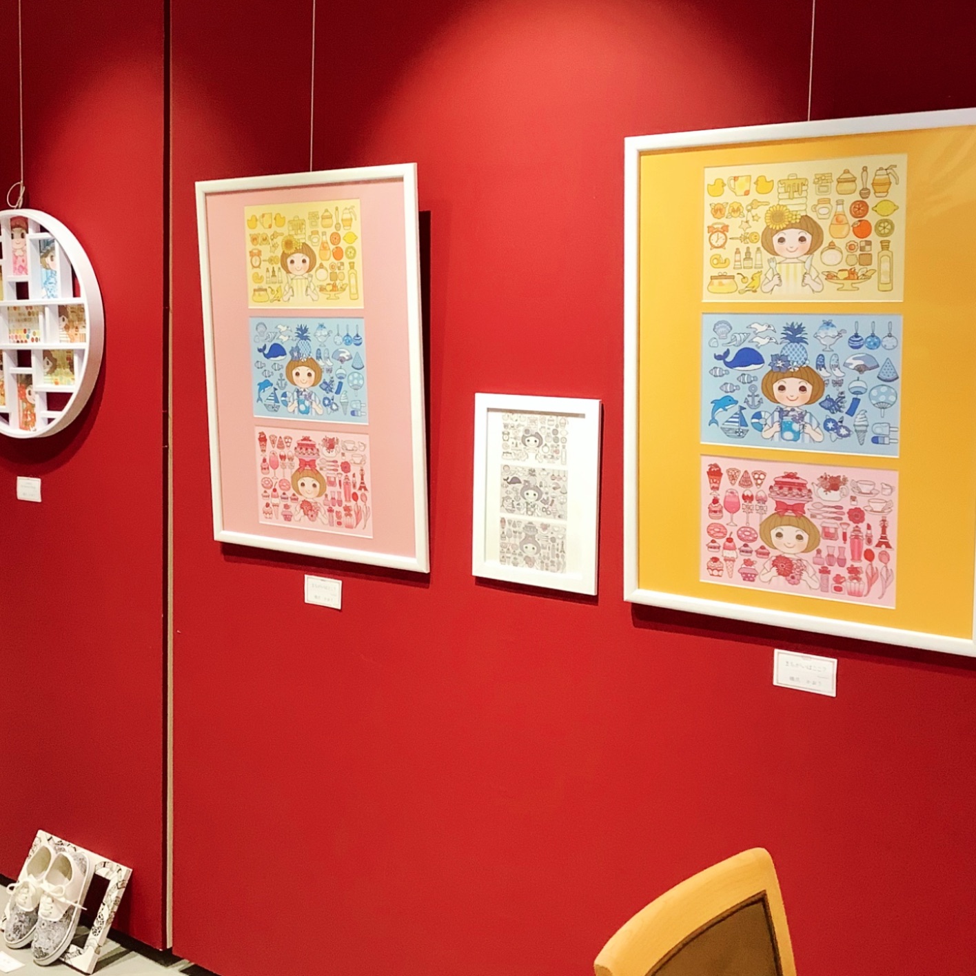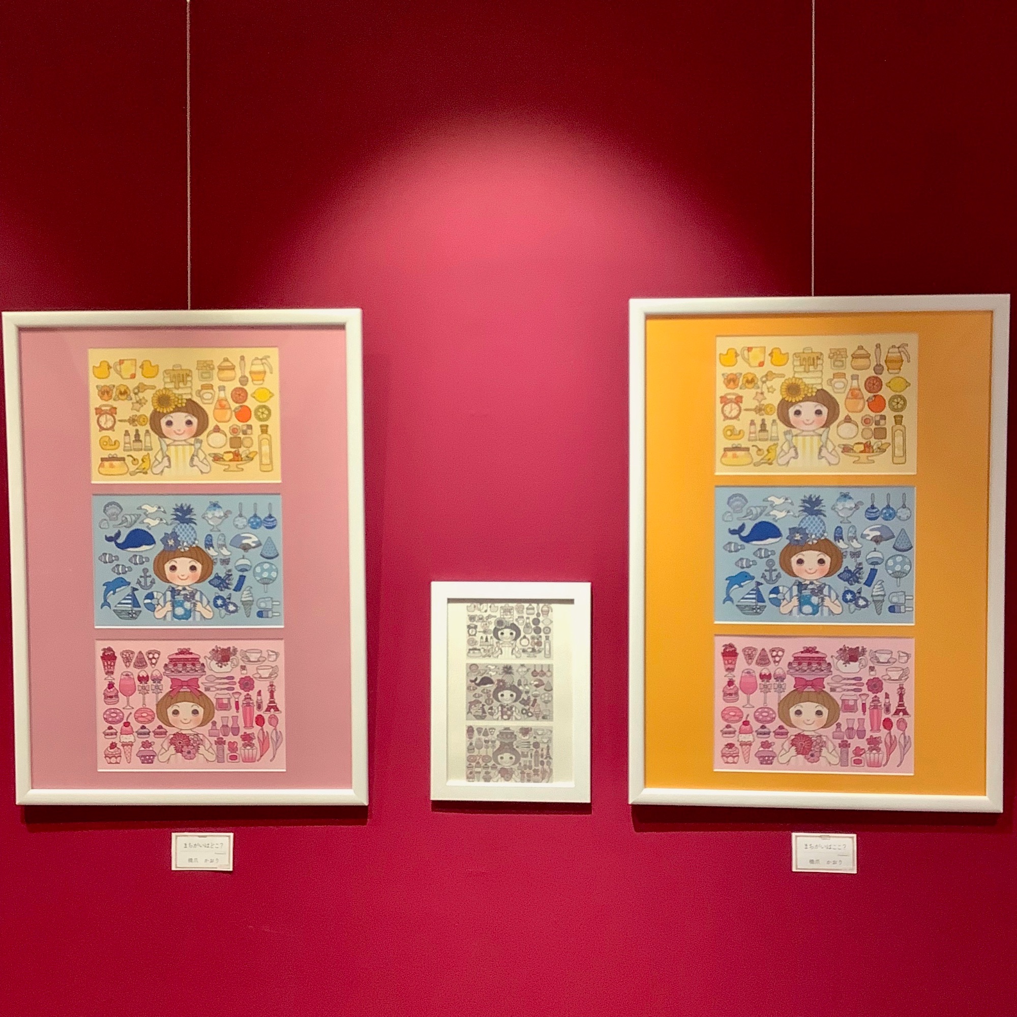 ご家族で開かれる展示会、とても心躍るものがありますね😆そして作品に間違い探しという遊び要素が組み込まれ、楽しく絵と親しめる素敵な空間です!マットの複数窓抜きならではの額装ですね✨