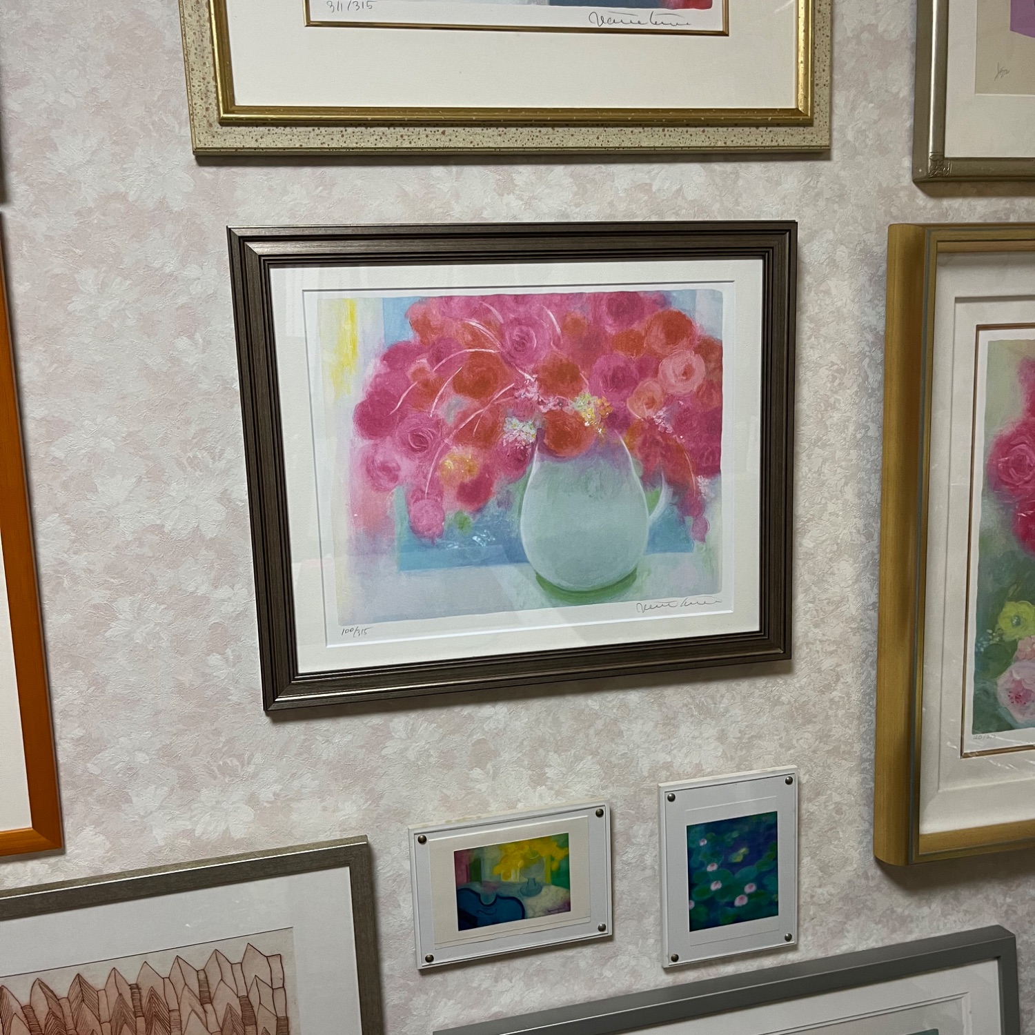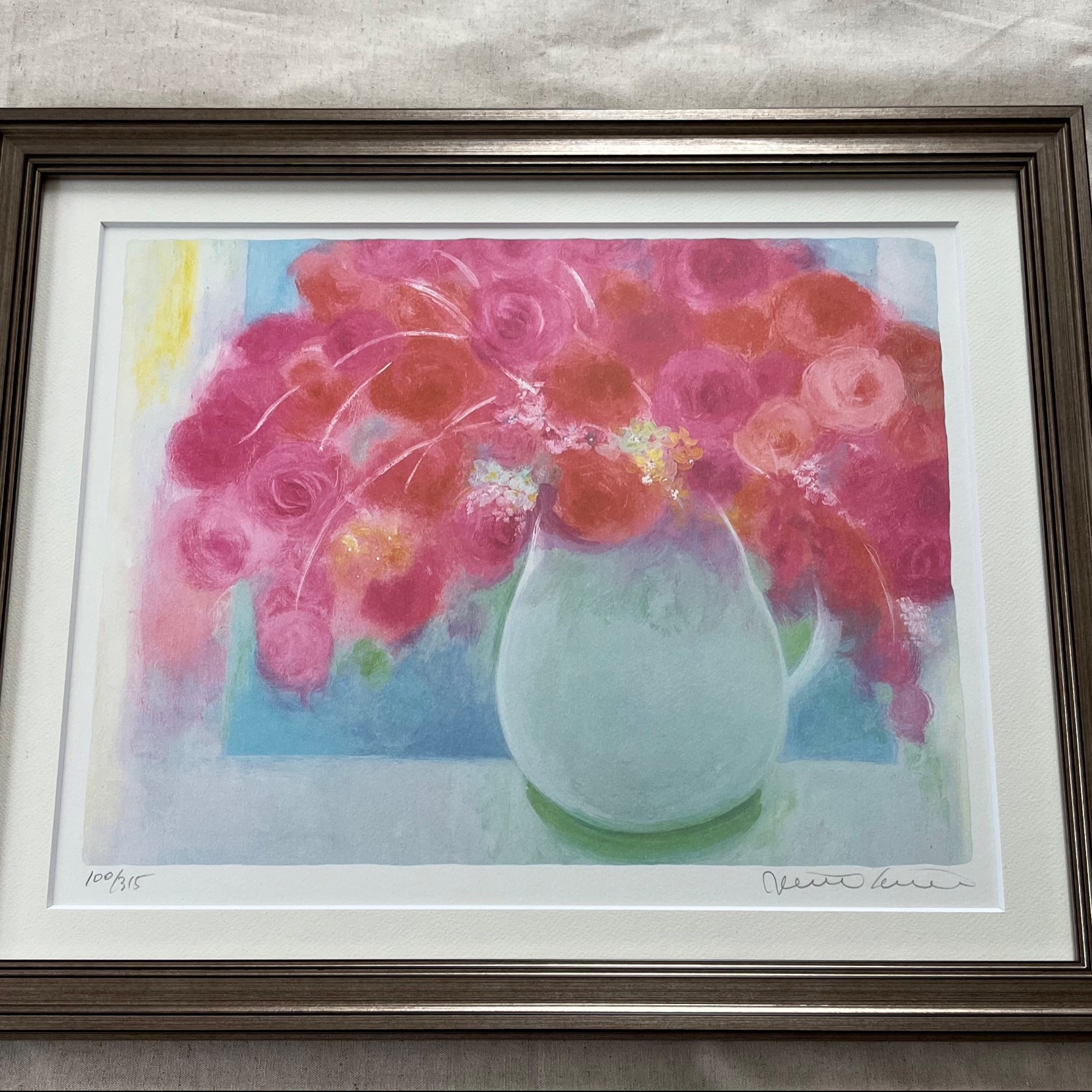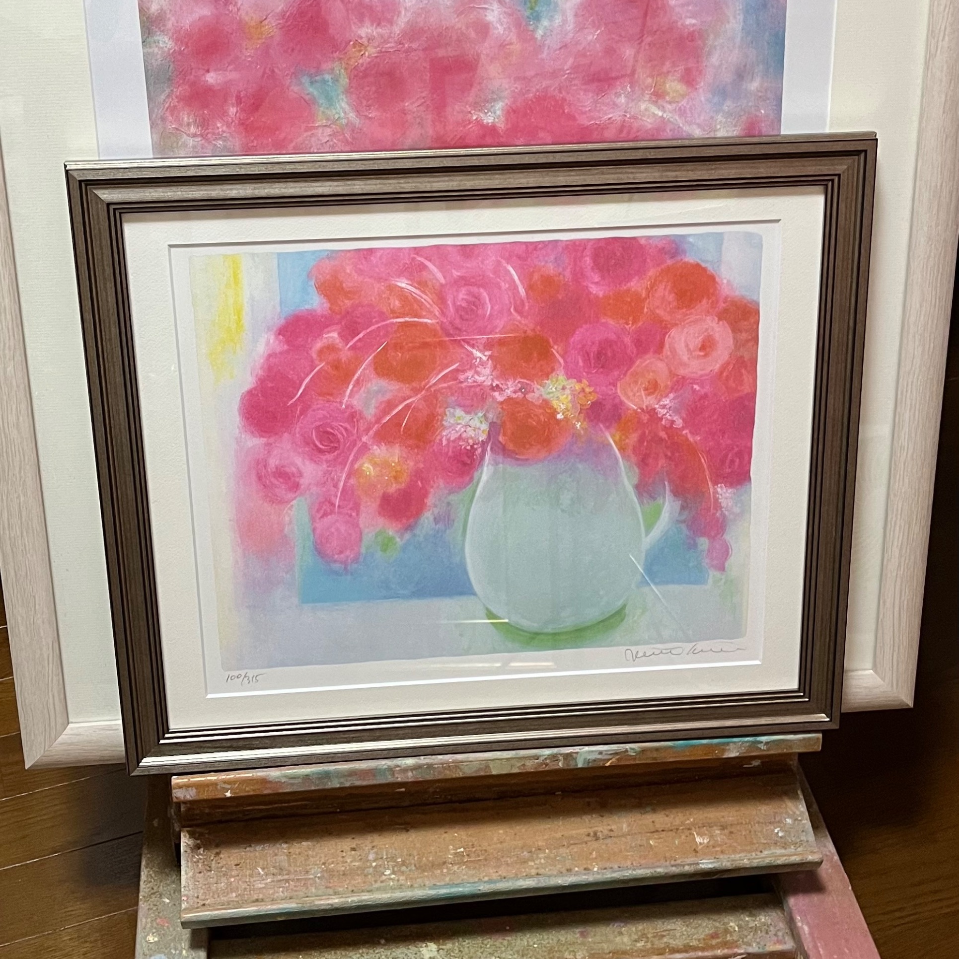 ジニー・キム リトグラフ 3321UVカットアクリル シルバー額縁 シングルマット