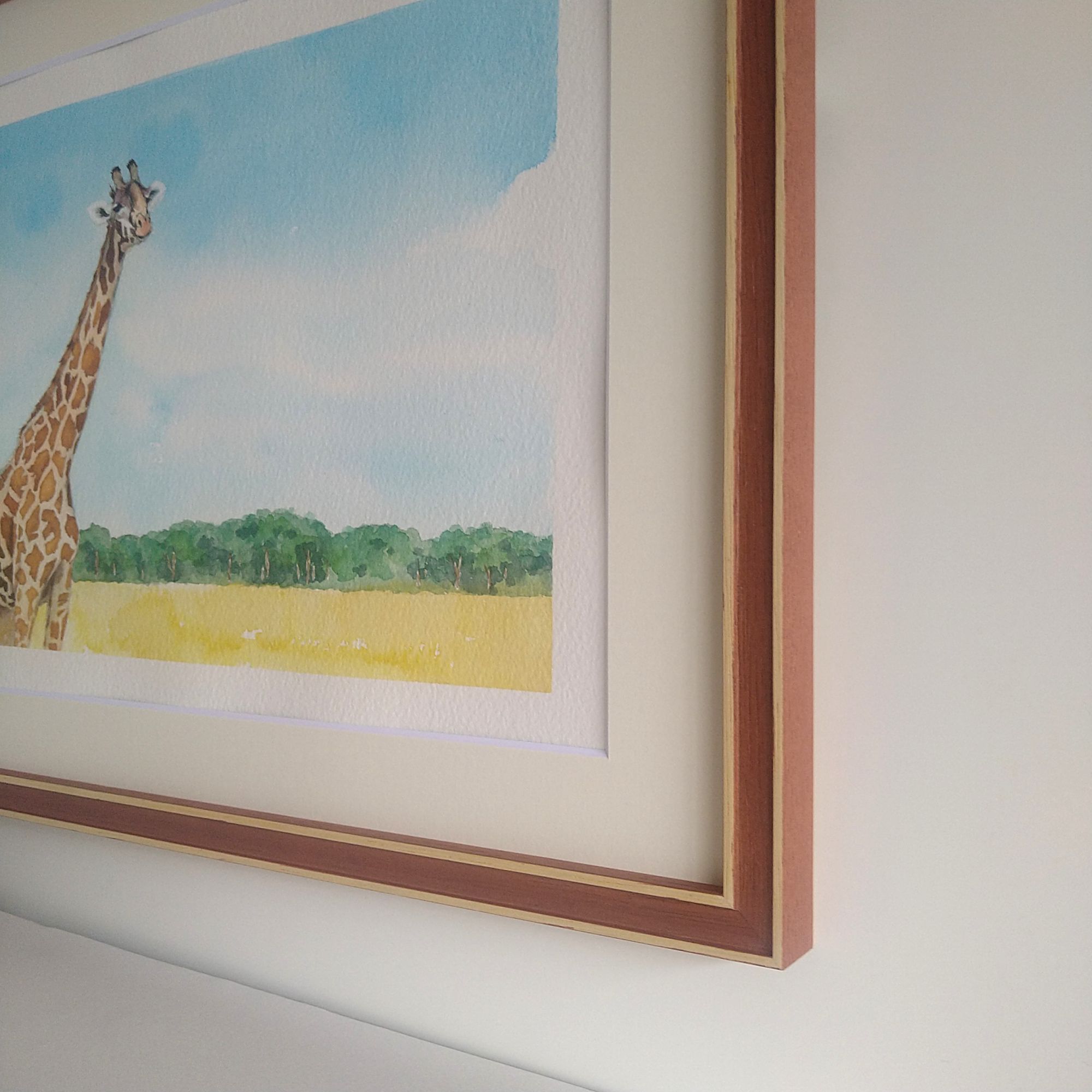 7910(レンガ色)の額を合わせました。絵の明るい雰囲気がよく伝わる額装になりました。