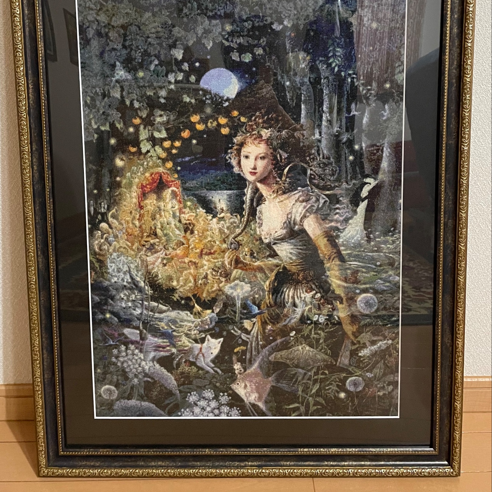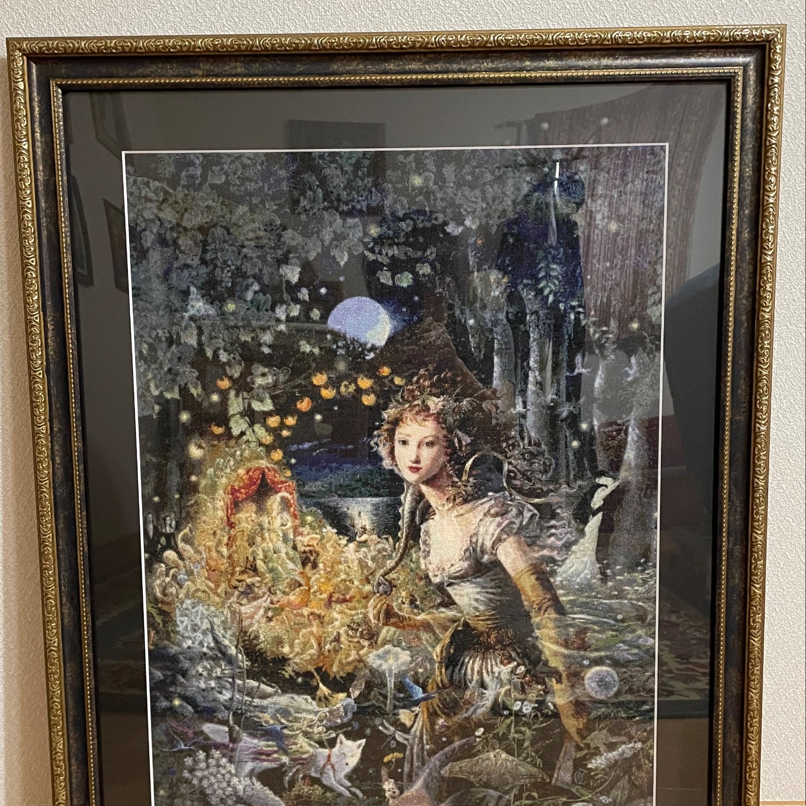 クロスステッチの作品です。 黒のマットとアンティーク調の額縁でとても素敵に仕上がりました! ありがとうございます。
