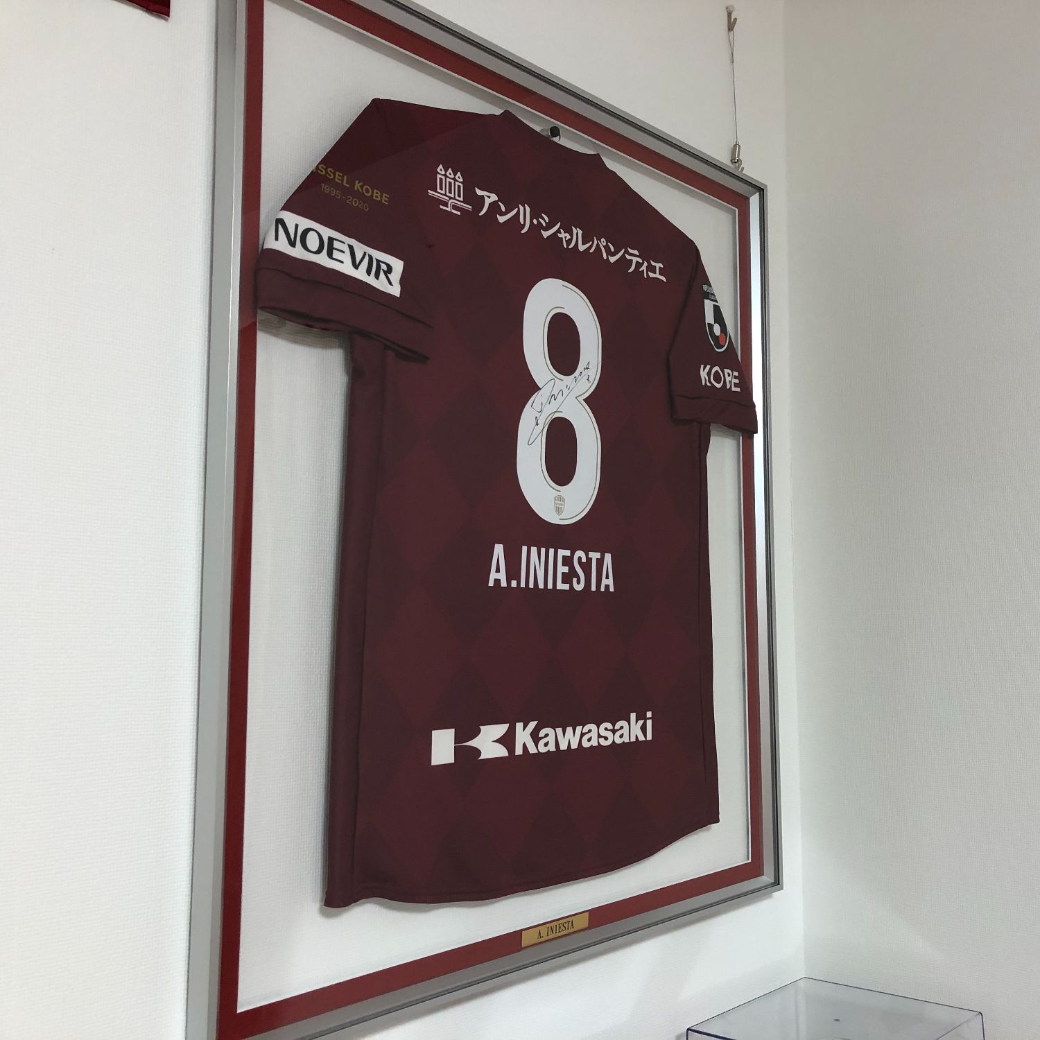 背面にアクリルガラスが入ったユニフォーム額。 お家の壁紙がそのまま溶け込んだ印象になるので、違和感なくユニフォーム が納まっています。 まさにインテリアの一部と化していますので いつまでも楽しんでいけること間違いないでしょう。