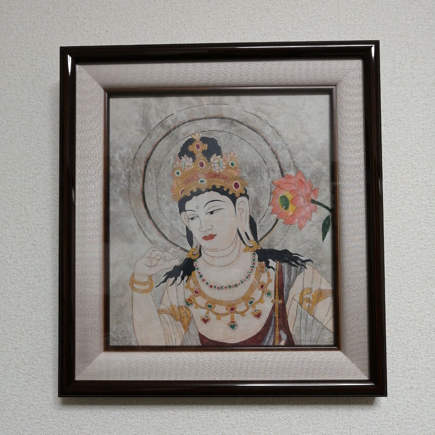 和紙のちぎり絵で作った法隆寺金堂壁画の蓮華観音菩薩です。額がとても絵を引き立て、大変気に入っております。