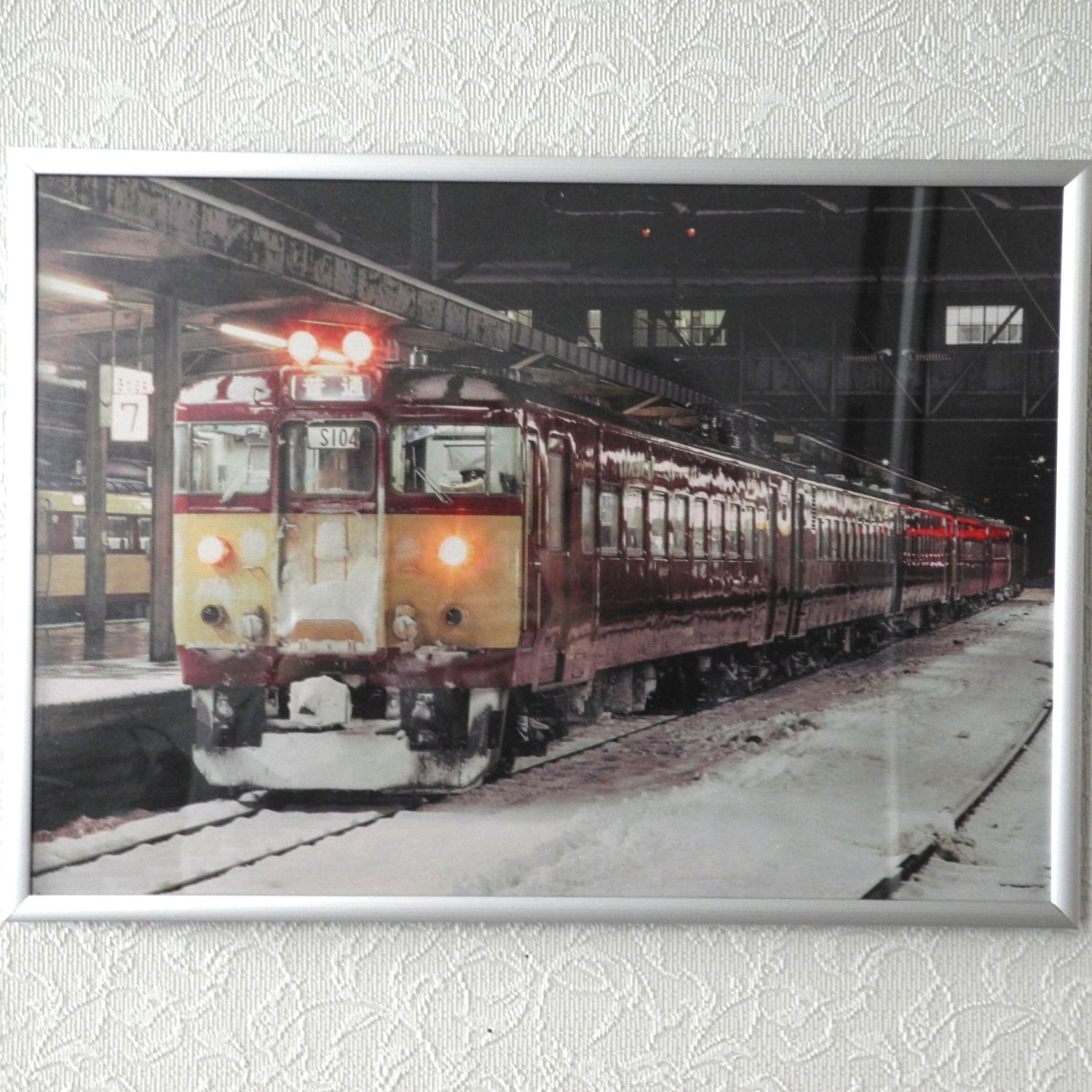 カレンダーの写真からお気に入りのものを見つけては随時飾ります。この電車は北海道で初めての交流専用電車で、半世紀前の懐かしい写真です。
