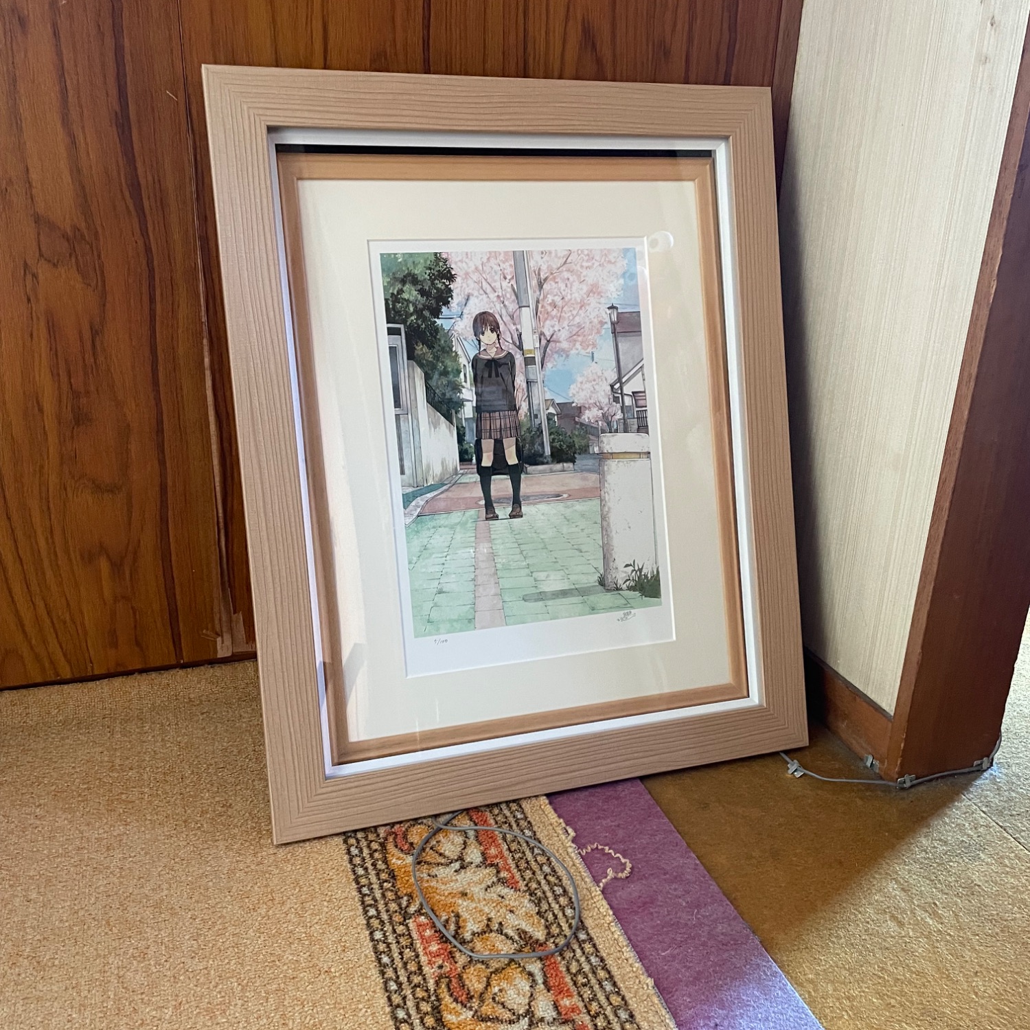 額縁 木製ナチュラル LTホワイト 採寸ミスで上が5mm余ってしまったので買い直しました。 堀口悠紀子 リトグラフ