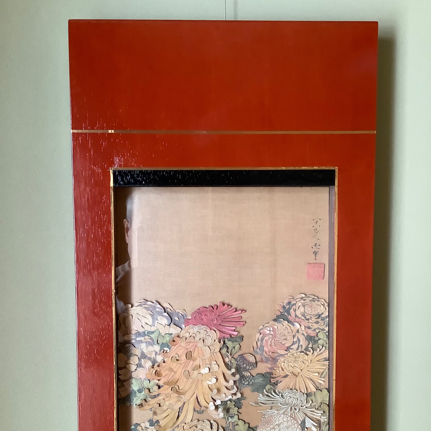 葛飾北斎の「菊図」をシャドーボックスにしてみました。額も手作りで掛け軸風にデザインしてみました。次回もう一つの「菊図」をアップします。