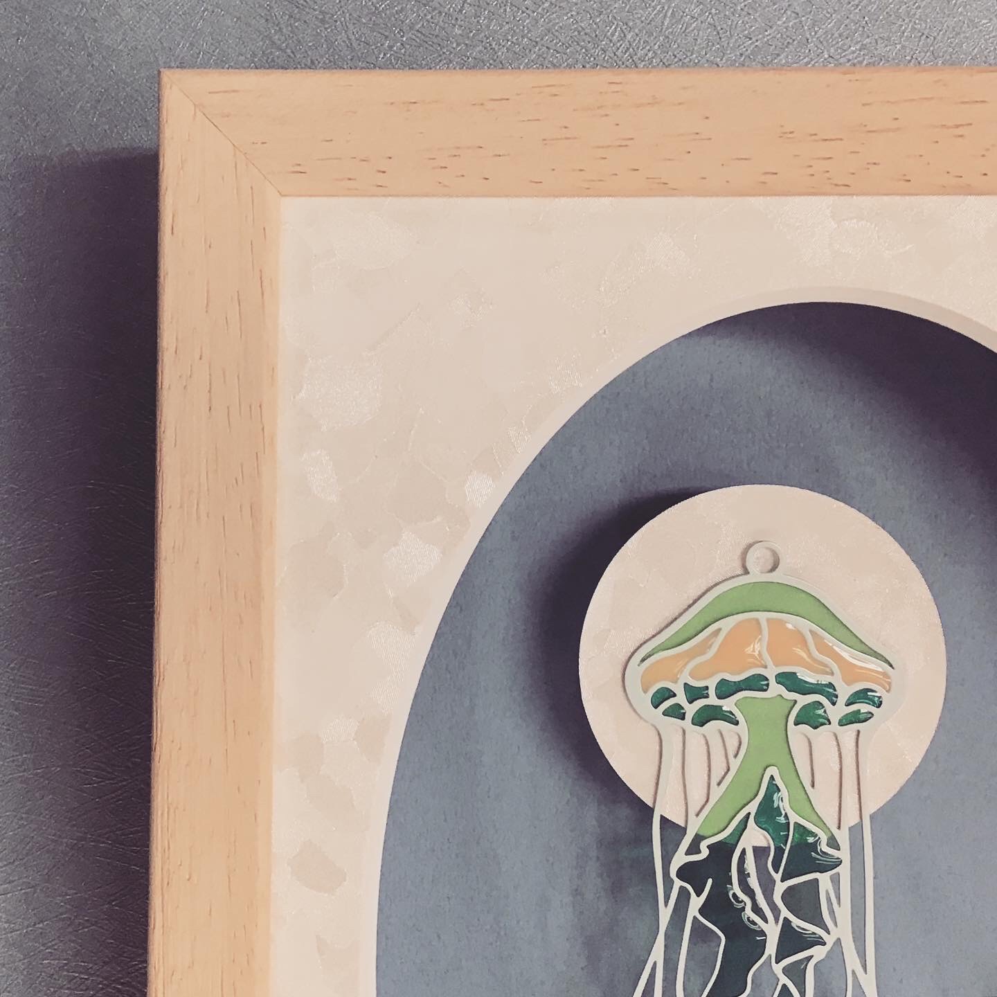 クラゲの水族館で有名な加茂水族館で購入したクラゲのしおりを額装しました! 使用したフレームは「アートボックス35 パステルホワイト」のキャビネサイズです!クラゲが浮遊しているみたいに見えるように浮かし加工で額縁してみました! #額縁のタカハシ松本店 #額縁のタカハシ #額映え #額縁屋 #額縁店 #額装 #額縁 #額 #額縁アート #額縁職人 #クラゲ #くらげ #しおり