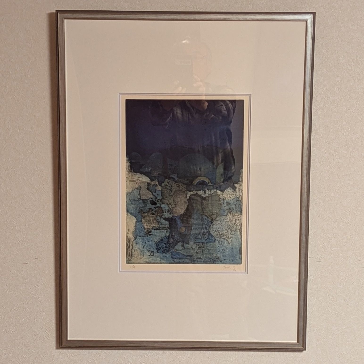 初めての額装作業となりました、ありふれた配色と成りましたが、落ち着いた作品にそうものとなったかと思っております。今後ともよろしくお願いします。