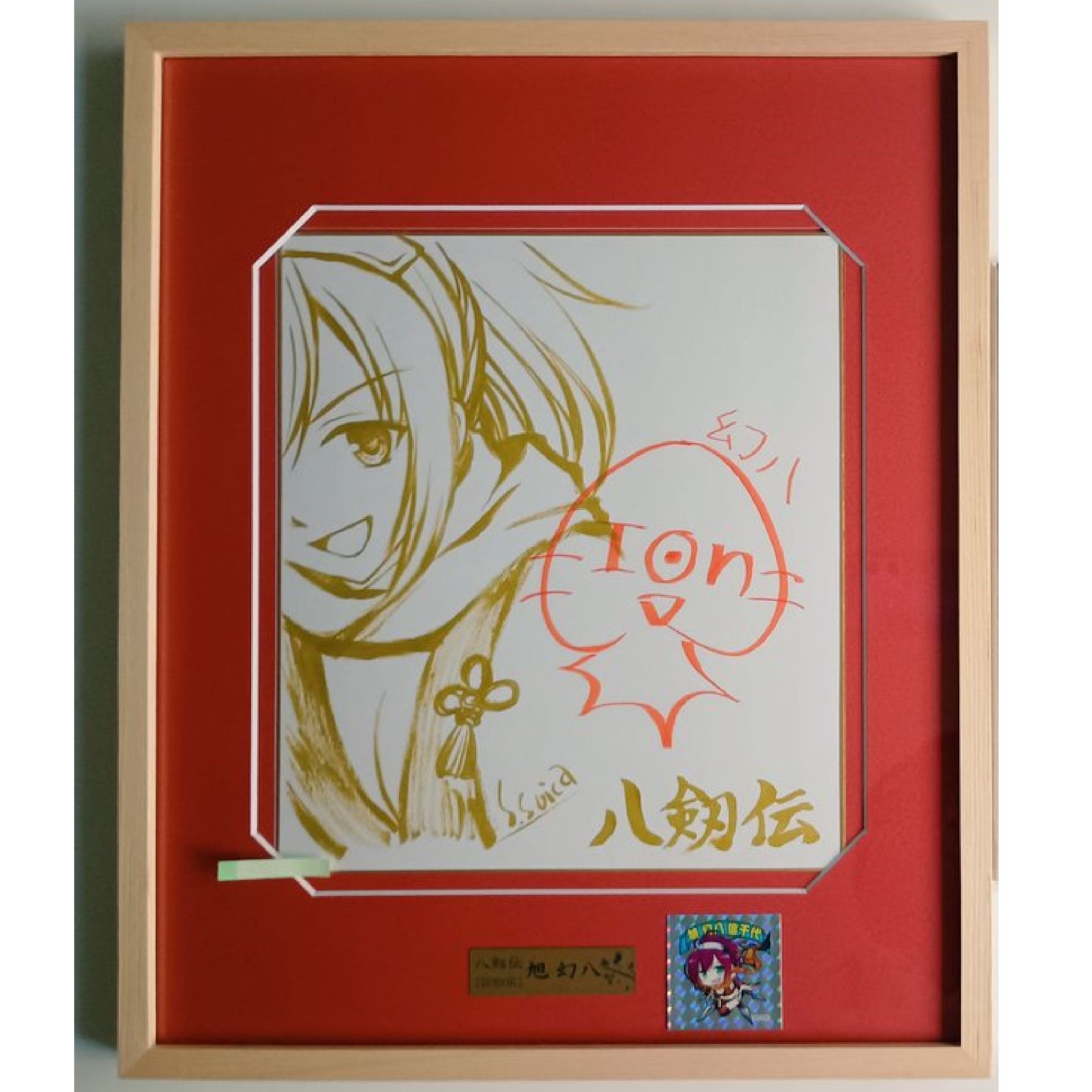 映り込みがないようにするのに苦戦。。。八剱伝というゲームのキャンペーンでいただいた直筆色紙になります。端まで見せる保存額装色紙額で朱色マット、文字板の色味も相まって朱・金でまとまって非常に格好よく飾れました。