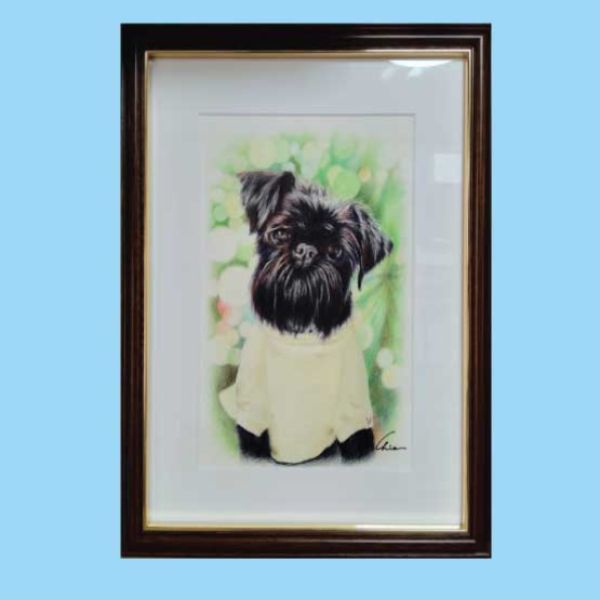 オーダー頂いた色鉛筆画のドッグポートレイトに合う額を購入しました。先様にも気に入って頂いています!