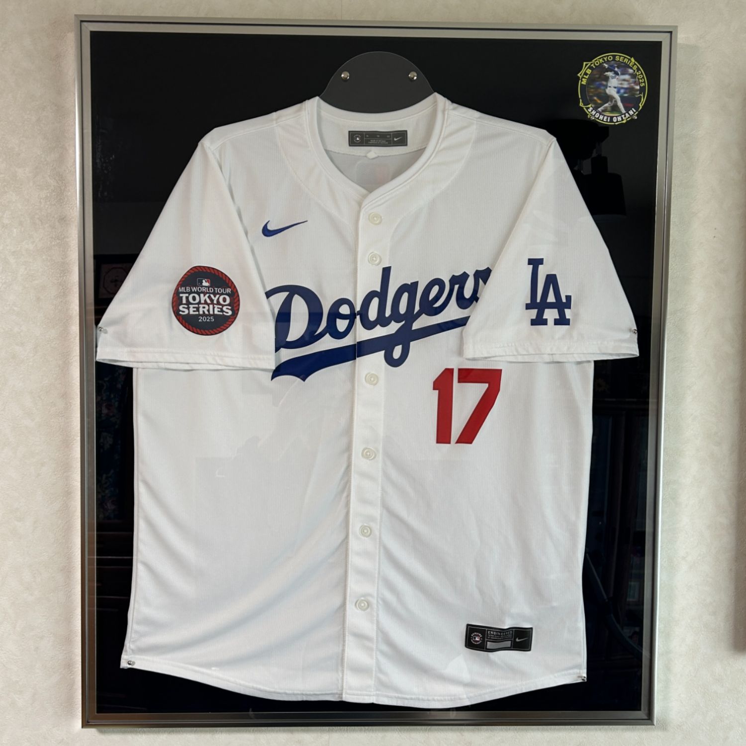 MLB WORLD TOUR Tokyo Series 2025 大谷翔平選手のユニフォームをステッカーと一緒に飾りました。 ユニフォームをピン止めしてきれいに飾ることができました!