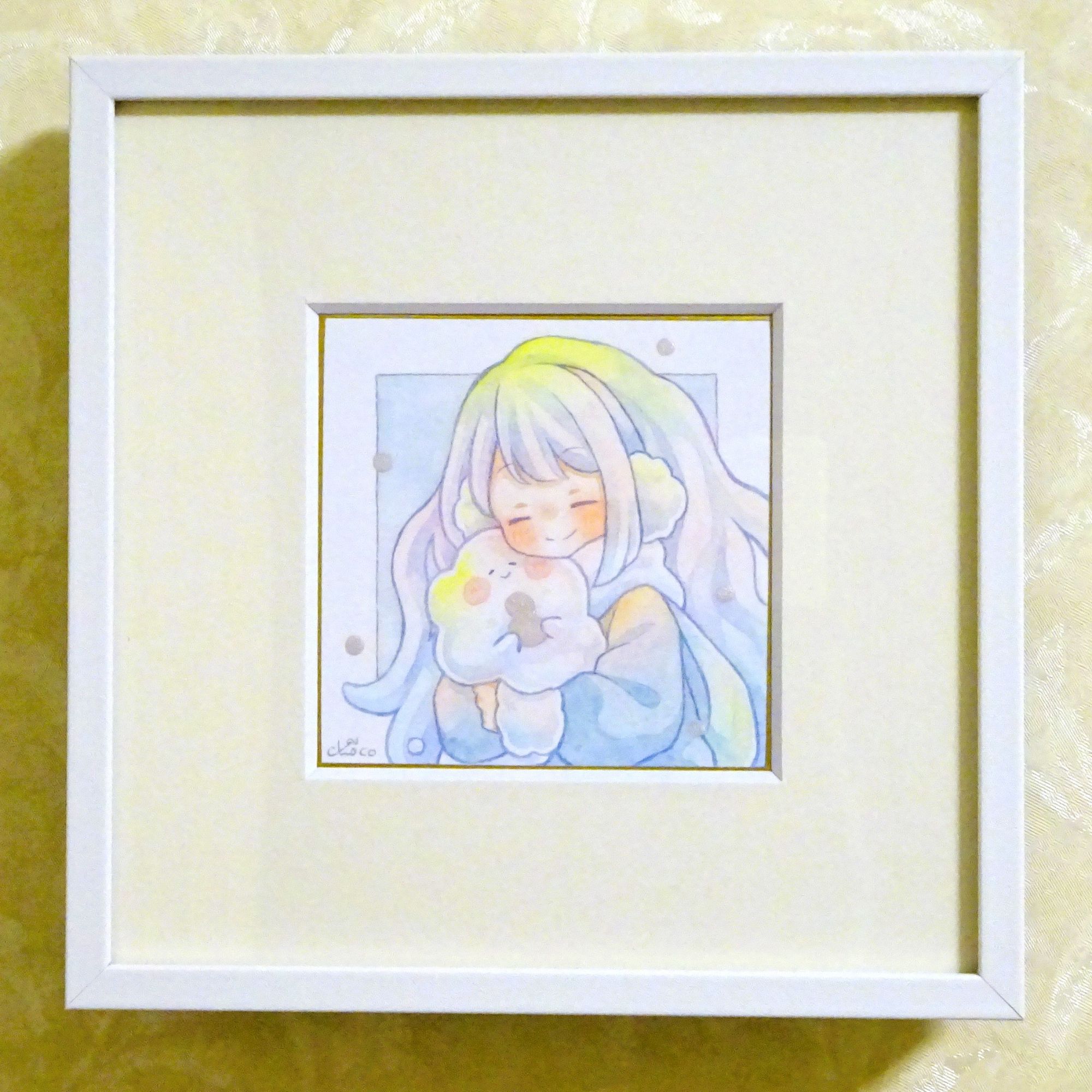 創作の豆色紙イラストを額装しました。 冬の季節のイラストなので、フレームは白色にしました。 クリーム色のマットがやわらかい色あいで好みです。 額 縁:フレームT25/UVカットアクリル付/150×150(15角)/ホワイト マット:クリーム10042/150×150(15角)/標準四角窓