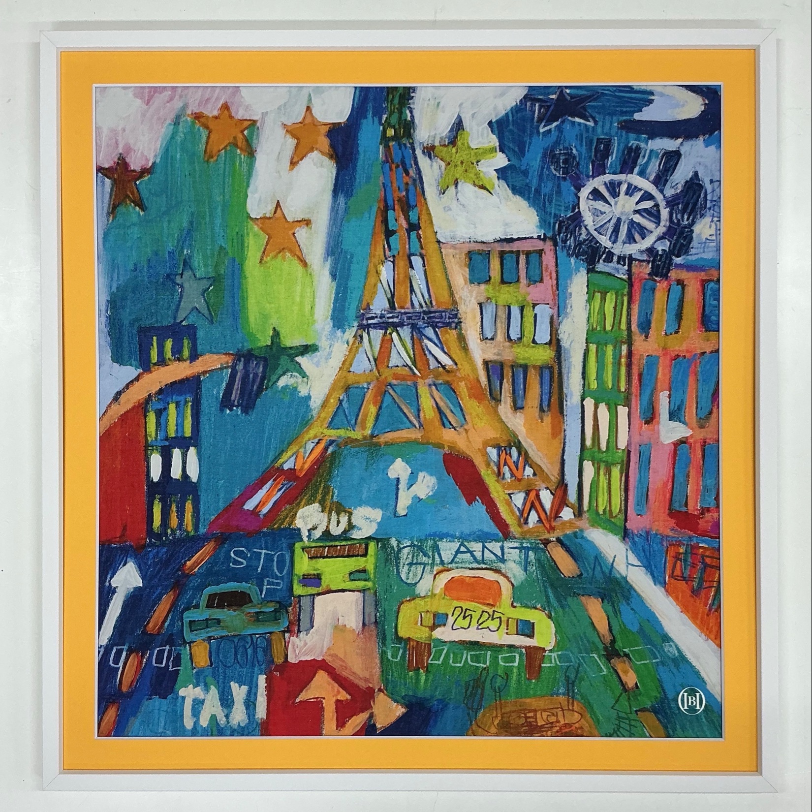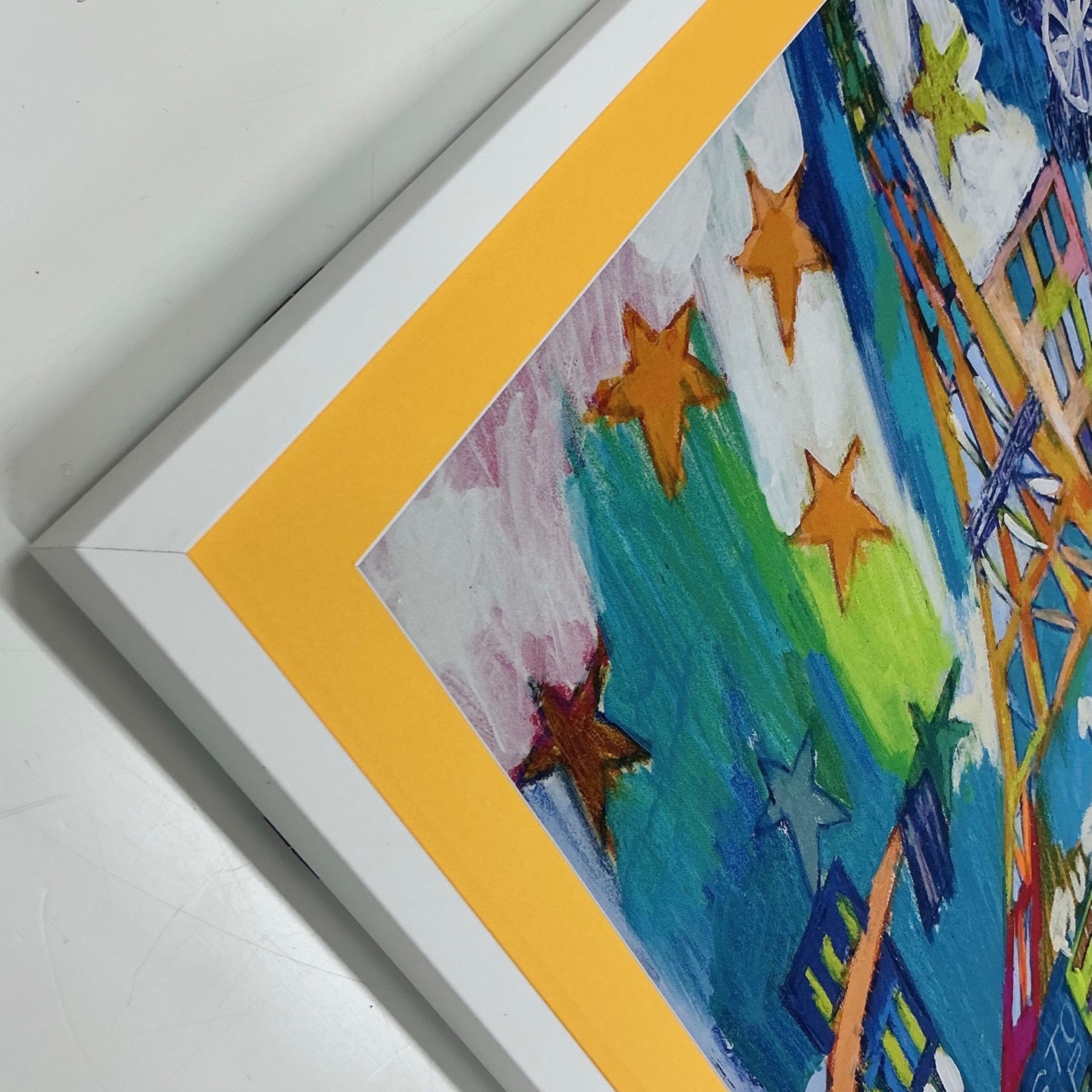 「生きることは描くこと」色彩に溢れた独自の世界観で作品を描く衣笠泰介氏「TOKYO」のハンカチを額装しました🖼 鮮やかに描かれた作品の雰囲気に合わせて、マットは黄色のマット(10044)を使用、フレームはハンカチが約500×520mmで正方形ではなかったので「BHー210 ホワイト」を550×570mmで特寸で製作しました。