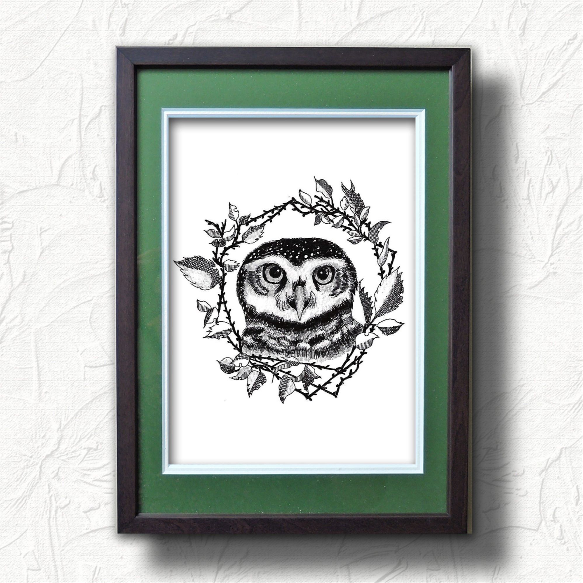 ペン画初心者の方向けの教材として制作したふくろうの絵を額装しました。