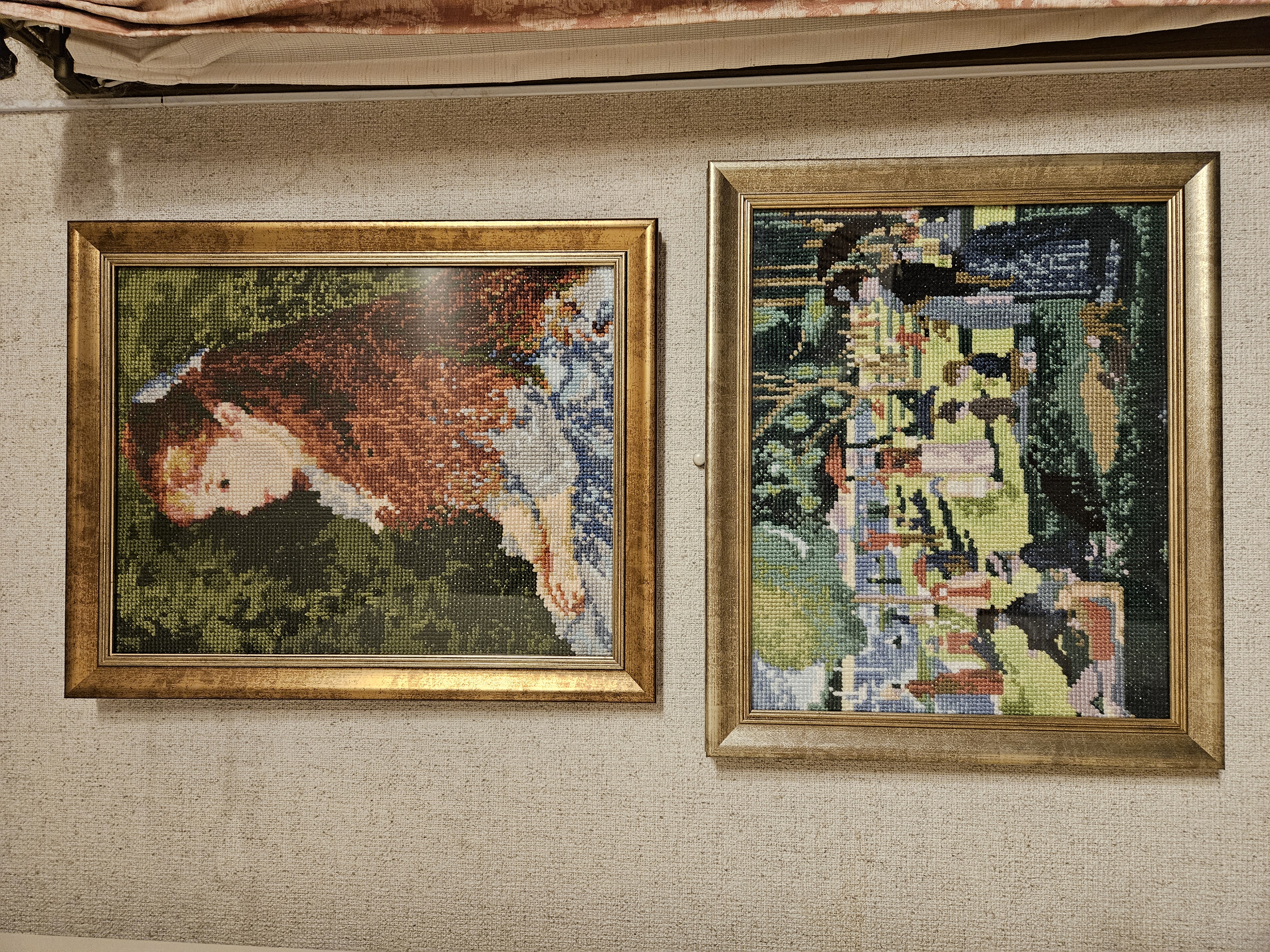 ルノワールのイレーヌ嬢のクロスステッチに合わせてオーダーメイドしていただきました。前に作ったスーラのクロスステッチの額もオーダーメイドです。どちらもピッタリサイズで、とても美しく飾ることができました。