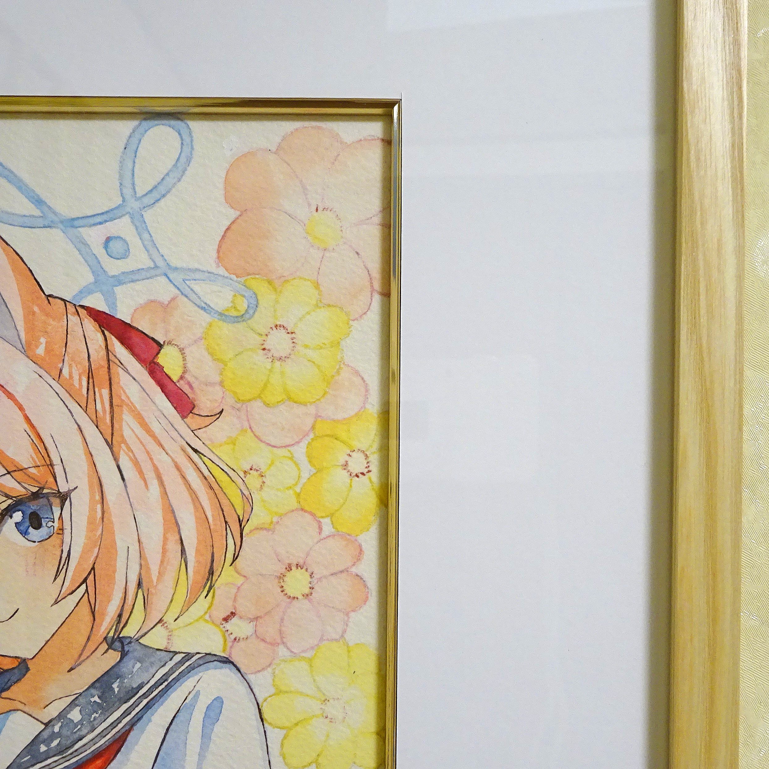 Webでリクエストした二次創作の水彩イラストを額装しました。 初めてマットに面金加工をしてもらいましたが、作品とマットの境界が、 色紙を思わせるような縁どりになり、見た目が華やかになりました。 【額縁】GT501/木地/348×424(四ツ切)/UVカットアクリル付 【マット】白10040/標準四角窓/面金加工/PDゴールド(艶)