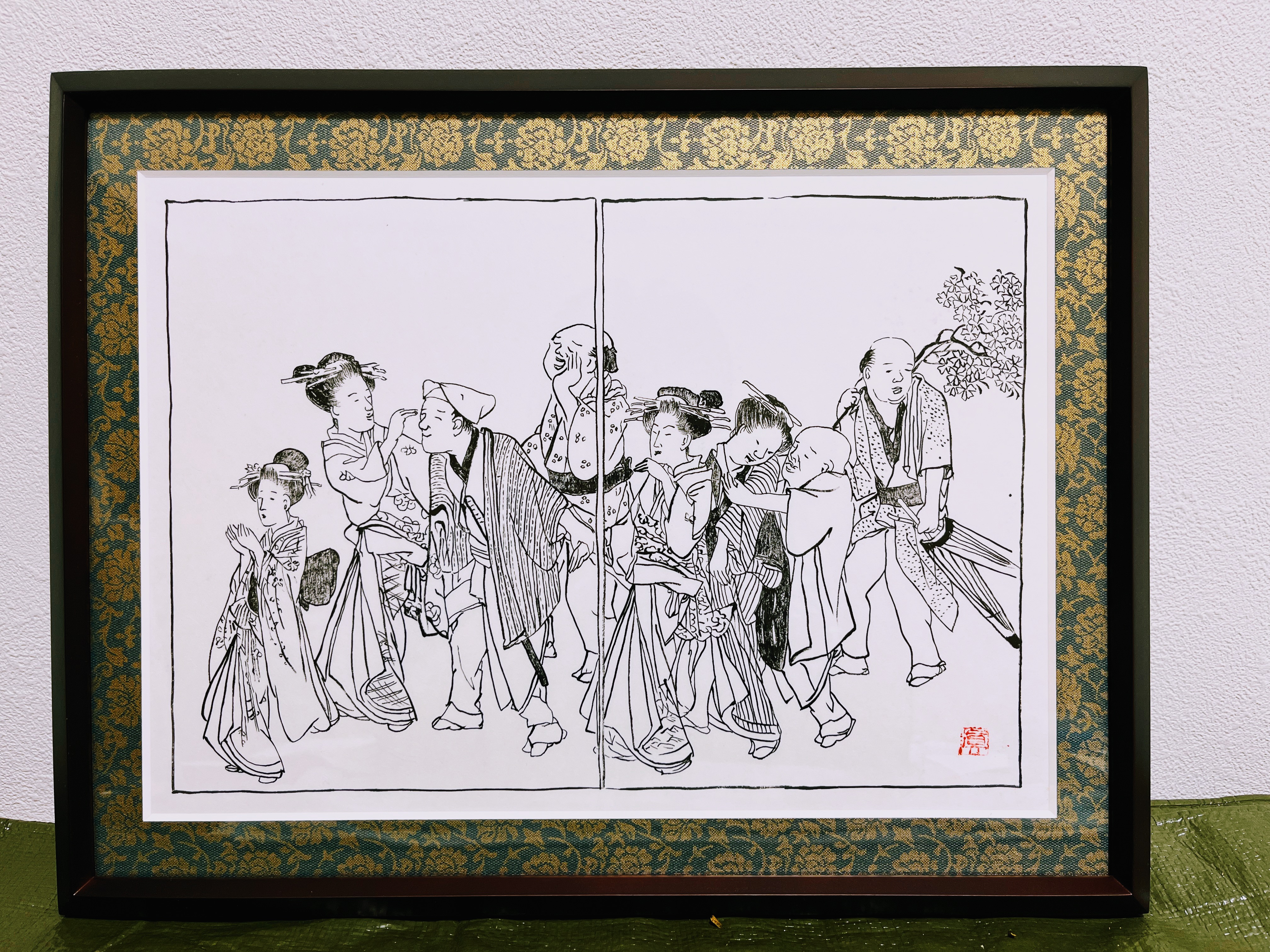 山口素絢先生の模写。裏打ちを依頼し、マットは装飾性の高いものを選択。 作品の見映えがグッとアップしました。