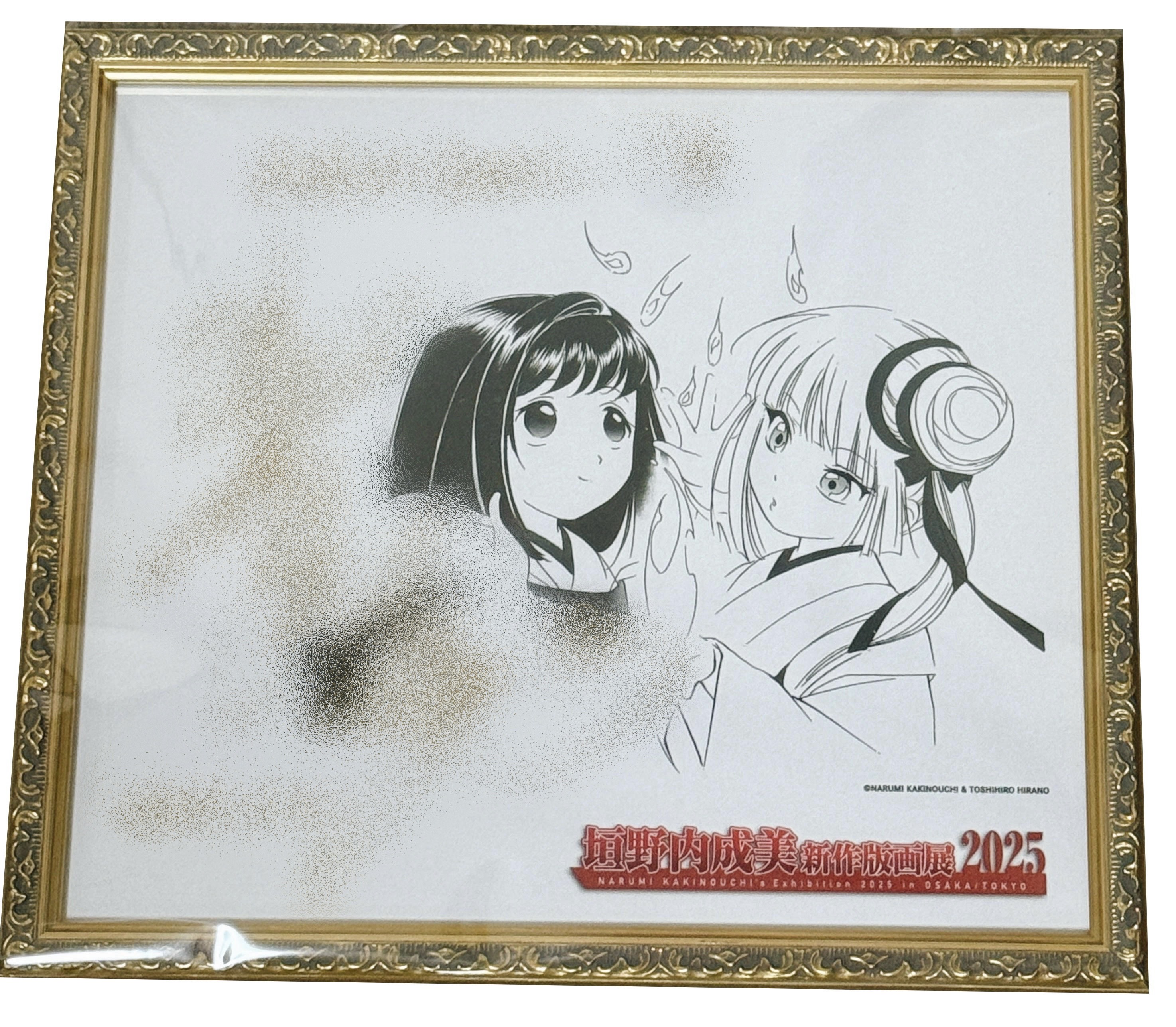 垣野内成美先生の「吸血姫美夕」シリーズ、版画展2025の色紙でしょうか✨ 繊細ながらも可愛らしいイラストを、ゴールドのプティが引き立てていますね😊