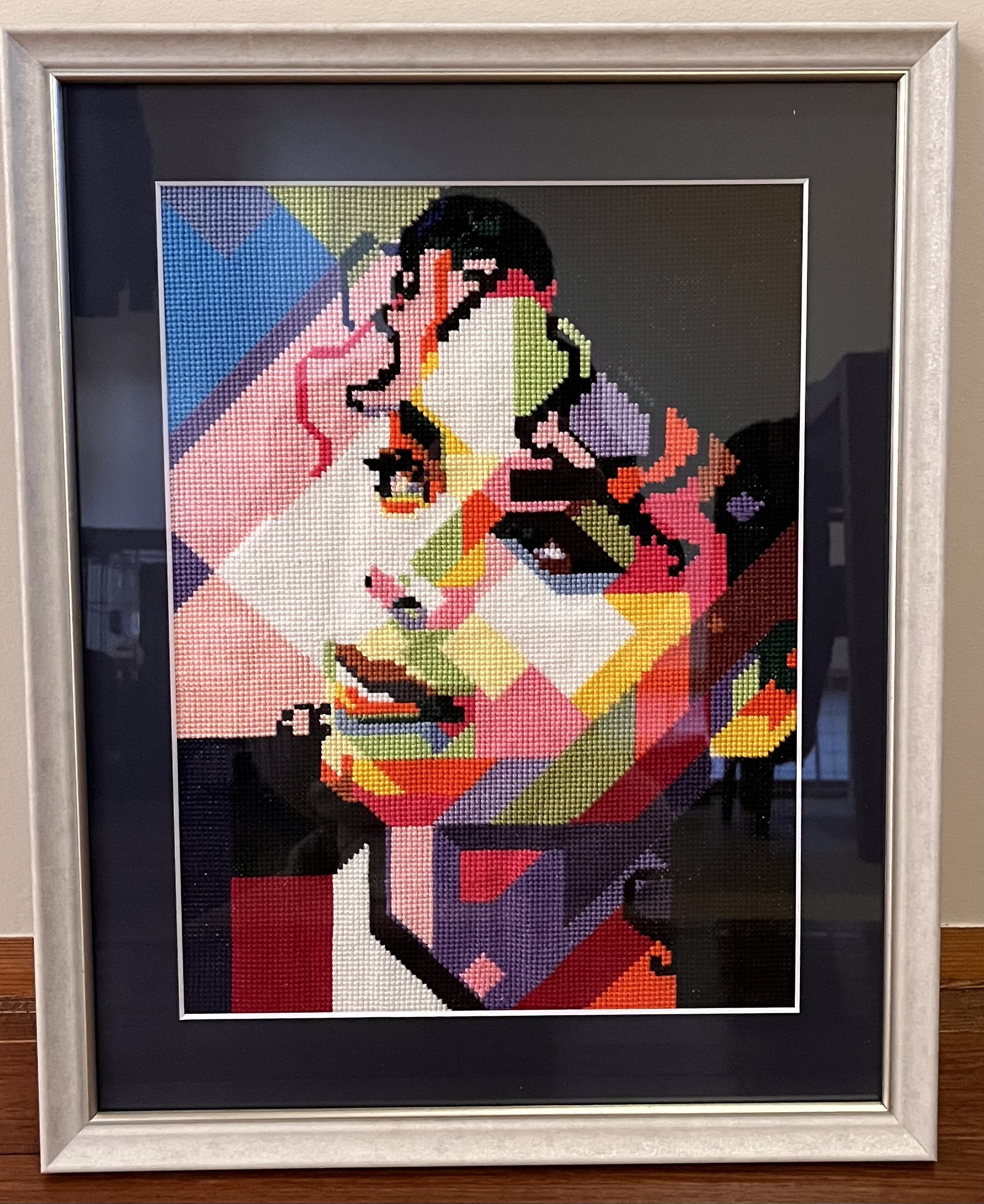 マイケルジャクソン風のクロスステッチです。額装してリビングに飾りました。