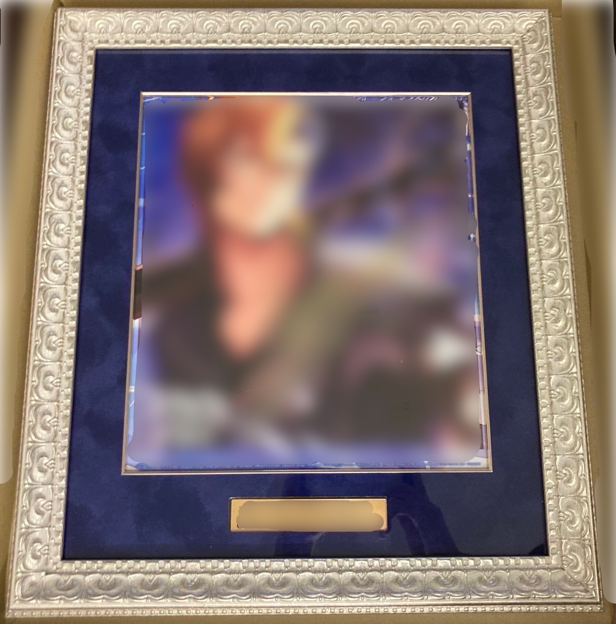 保存額装にてサイン色紙額をオーダーで作成していただきました! フレームはSF351銀箔、マットはスエードの青×面金PDゴールド 彫刻プレートのはめ込み窓を追加してもらい大満足な仕上がりです!