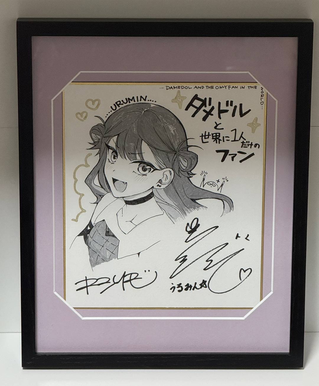 漫画家キシリモ先生の直筆イラスト、直筆サイン、声優 花守ゆみりさんの直筆サイン入色紙を額装させていただきました。 初めて保存に特化した額縁を購入してみましたが、色を選べるのがとても良かったです。 キャラクターの担当カラーである黒の枠に、キャラクターの髪色をイメージした紫……最高の1品になり感動です!!