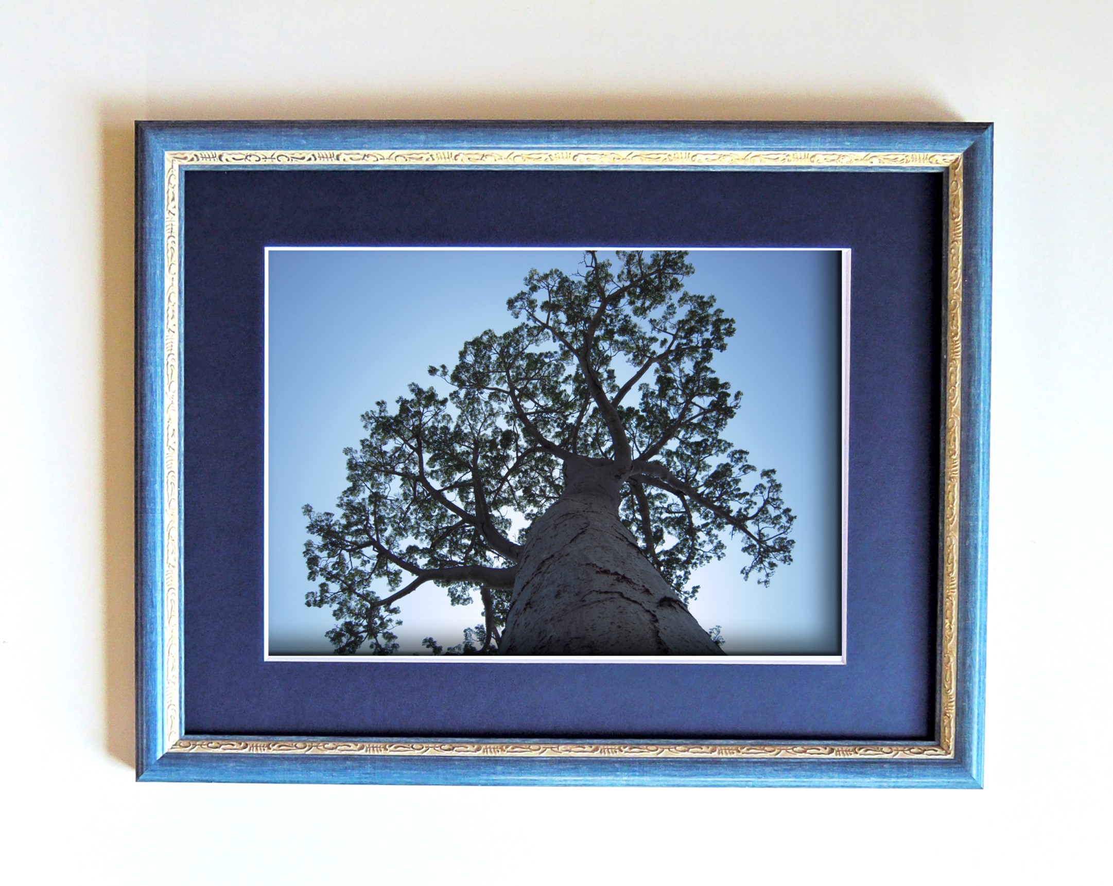 マダガスカルで撮影したバオバブの樹の写真です。 アフリカの真っ青な空を思わせるブルー系の額とマットで統一してみました。