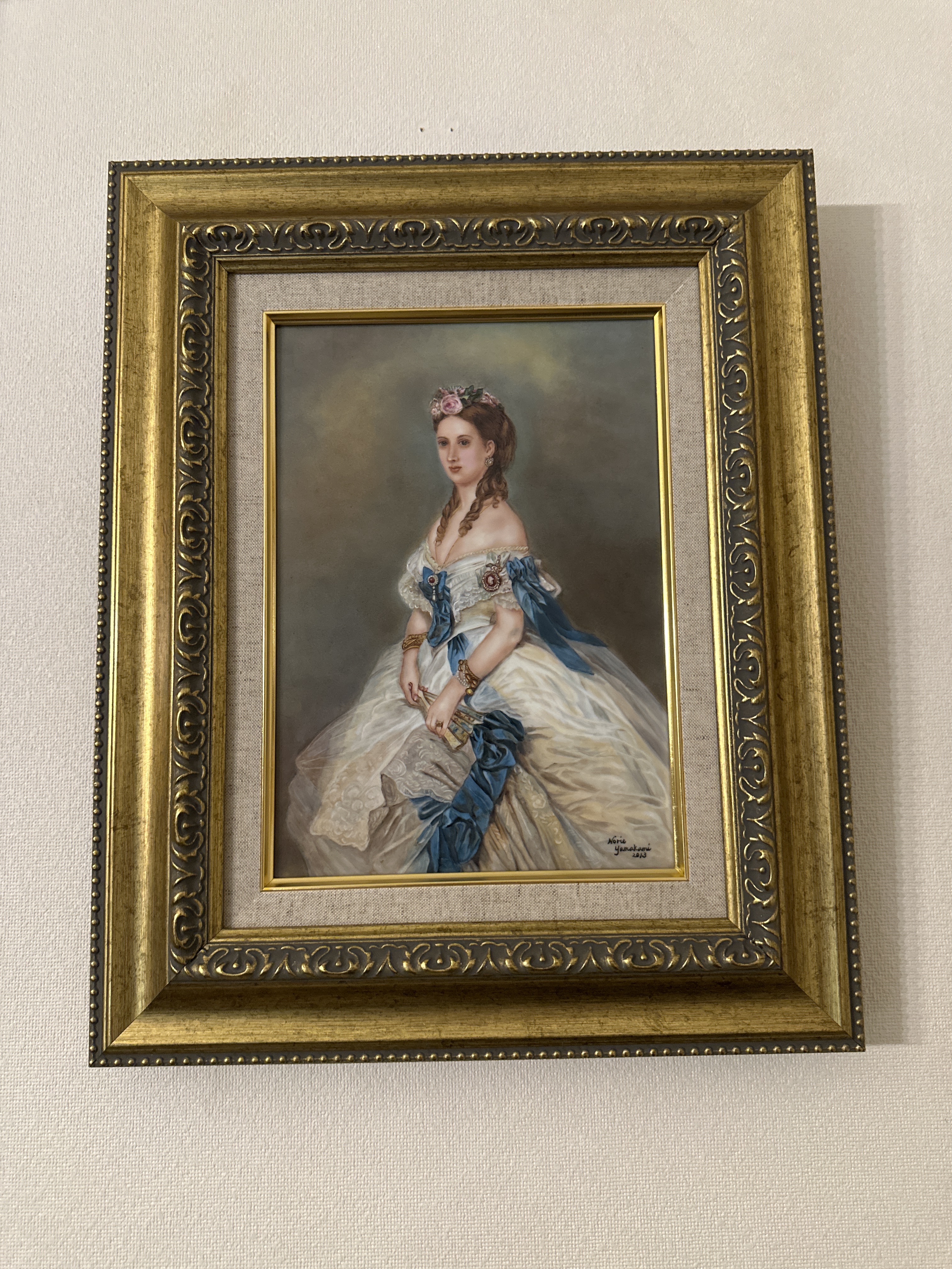 陶板(磁器の板)にアレクサンドラ王女を描いたものです 5回ほど焼成し完成したものをオーダー額装に入れました とても素敵になりました