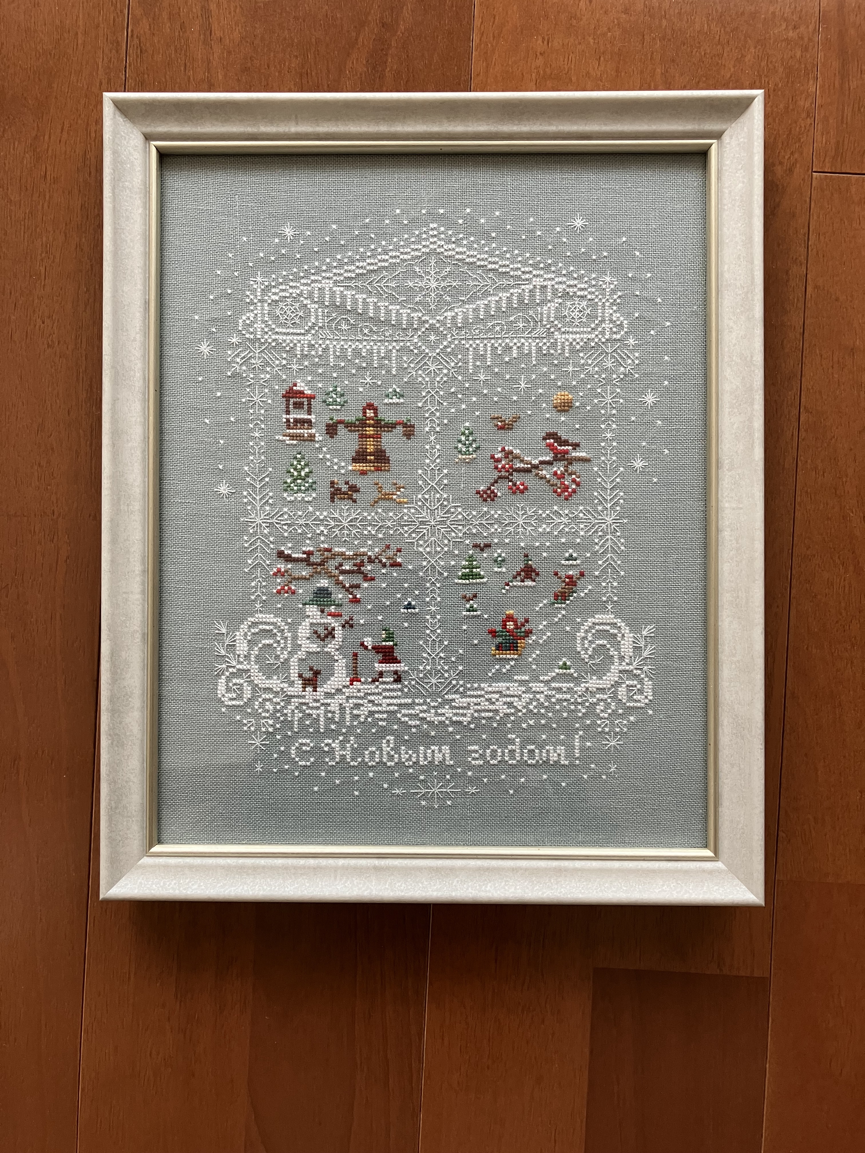 クロスステッチ 冬景色に合う白の額縁を選びました。シルバーのラインが入ってるので引き締まって良かったです。