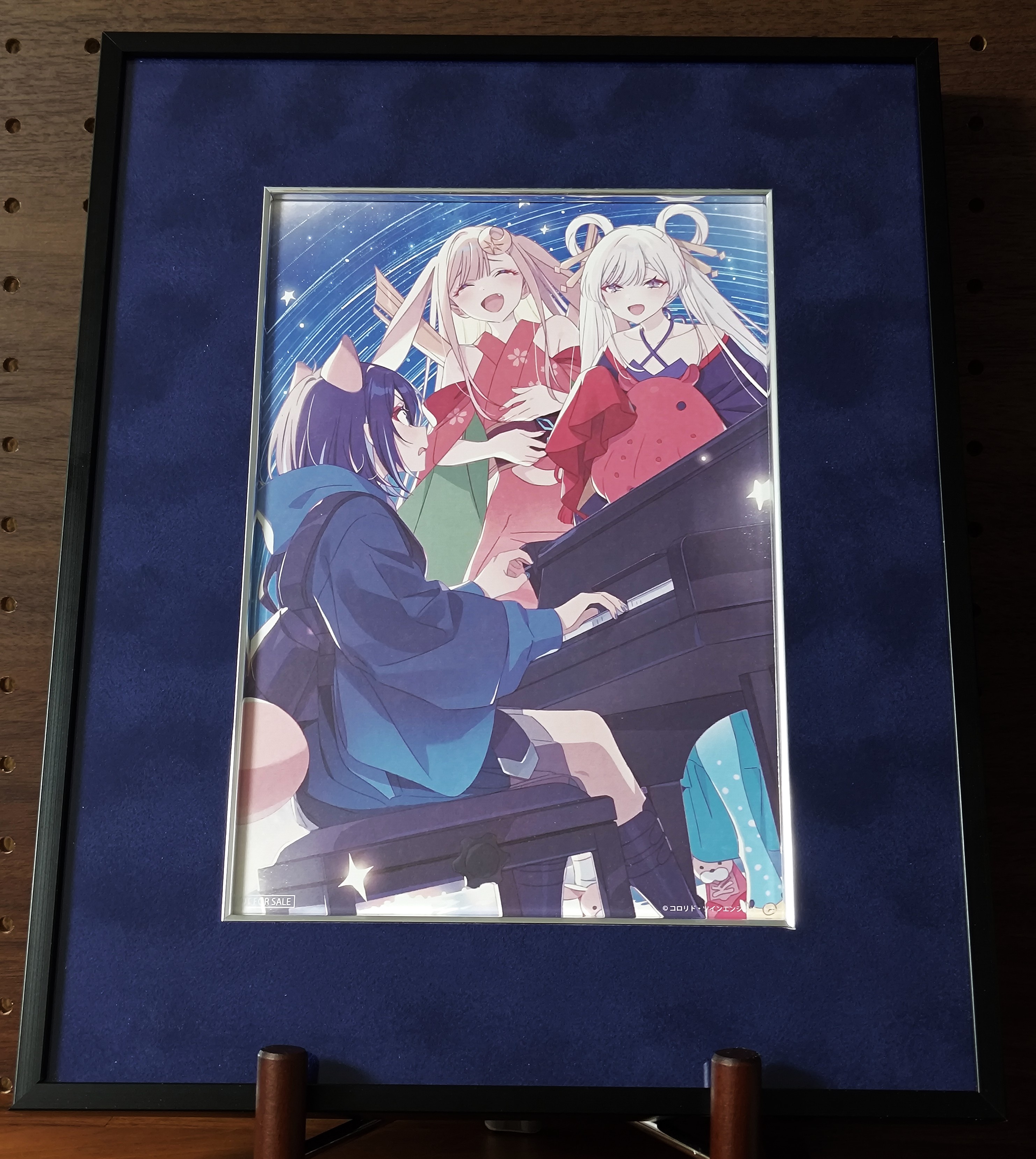 超かぐや姫! 映画入場者特典のイラストボードを額装しました。 額は細目のT25に、スエード青の面金加工(PDシルバー艶)を選択しました。