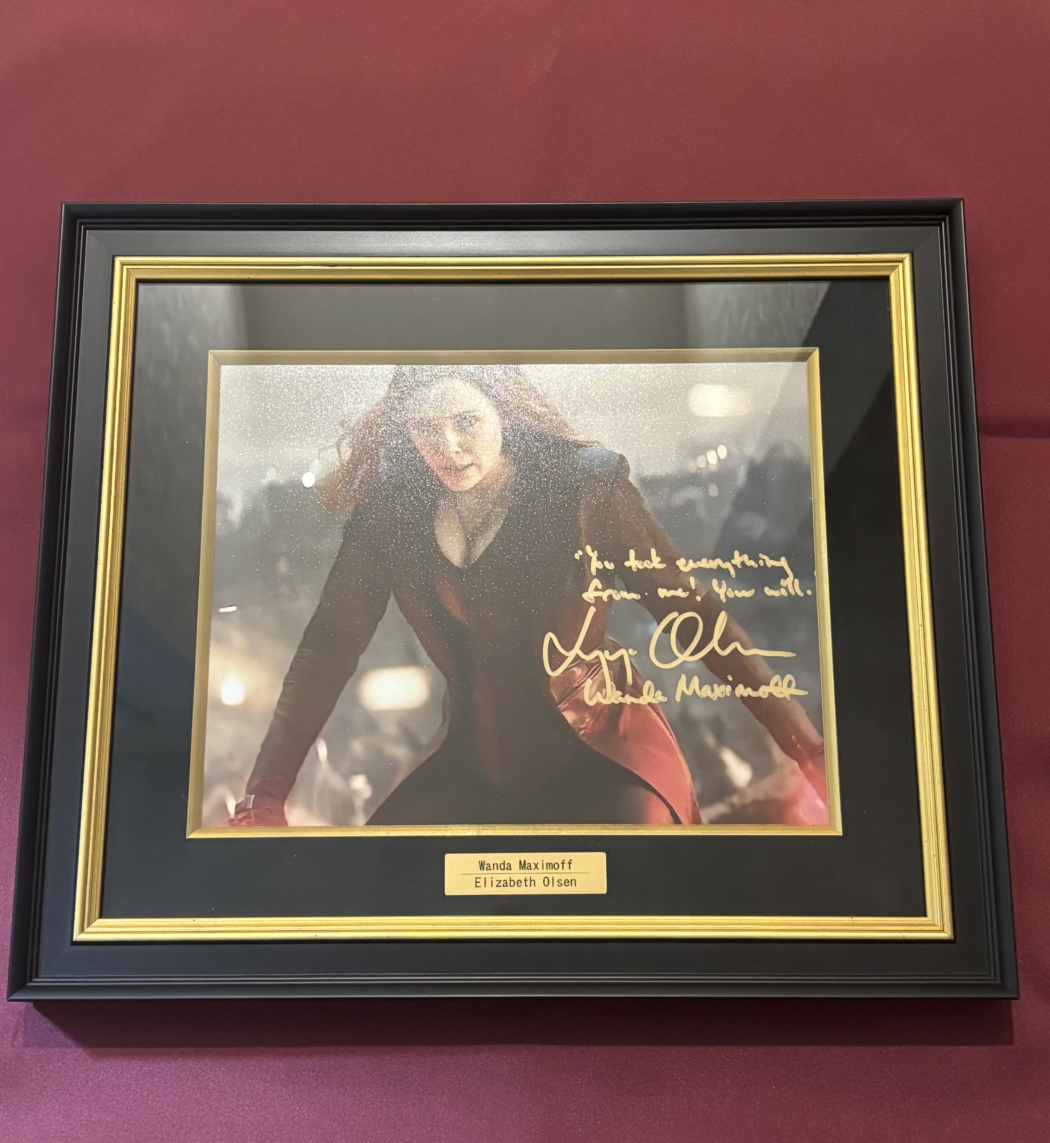 エリザベスオルセンのサインです✨ 金の色が入った額縁がお気に入りで5枚以上同じものをリピートしています!
