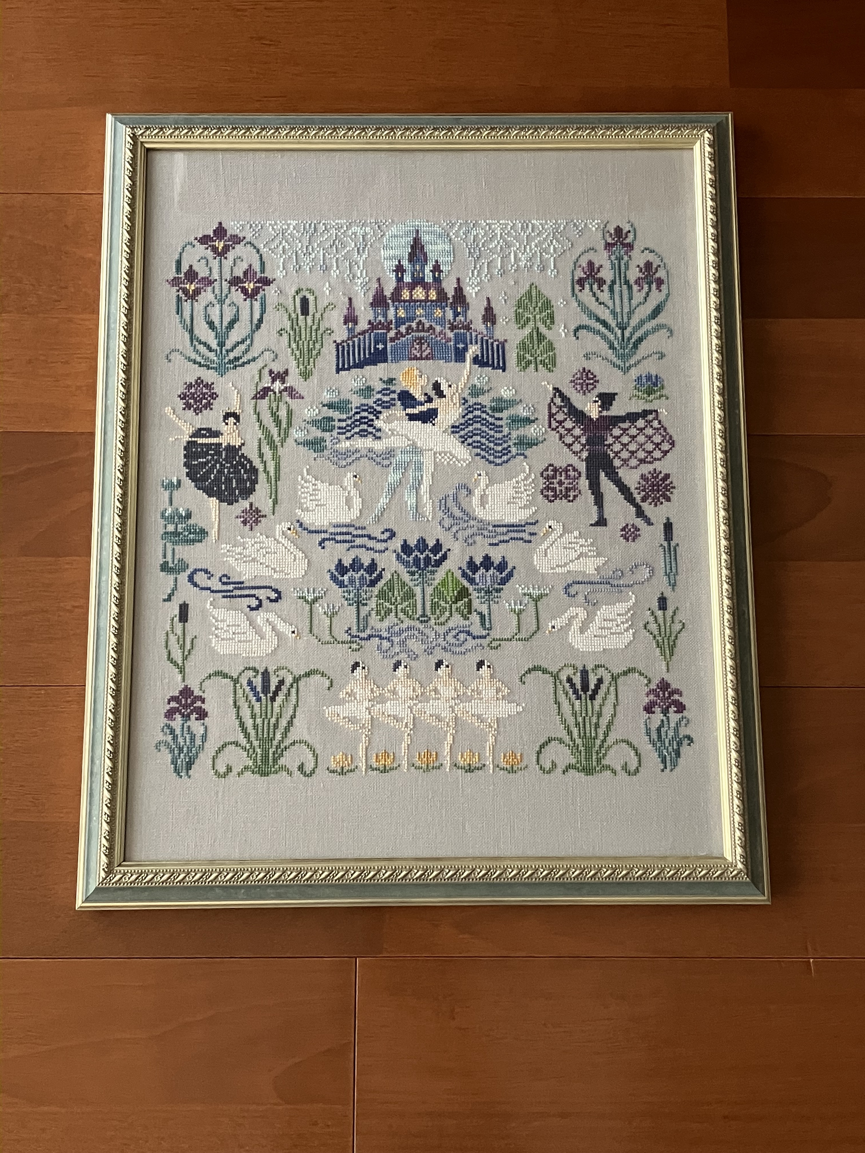 クロスステッチ 図案に合わせて、アンティークで華やかな額を選びました。