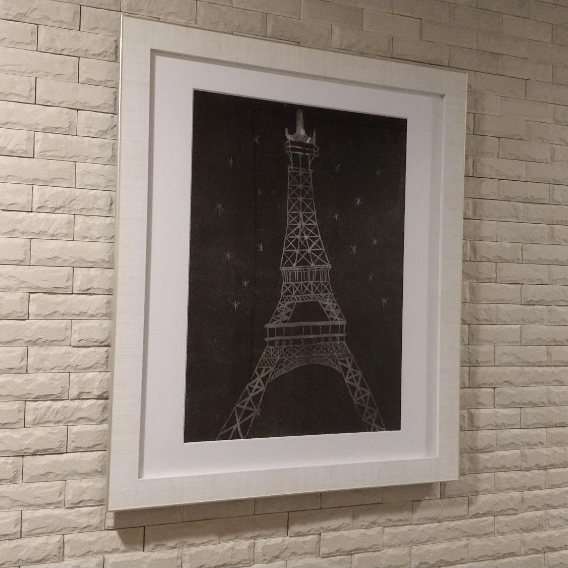 8162ホワイト四ツ切な額にマット白10150をご購入頂きました。 モノトーンカラーのスタイリッシュな軽量額と夜空に浮かぶ東京タワーでしょうか 版画がとてもマッチしております。 また額と壁面がこれまた素晴らしくあっておりますね~。 ご購入される際、飾る場所を決め飾った際のイメージをされていたと想像されます。センスの良さを感じるチョイスです!!