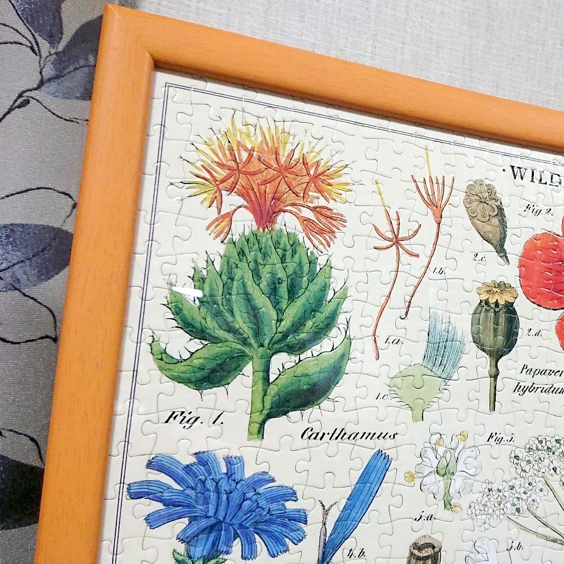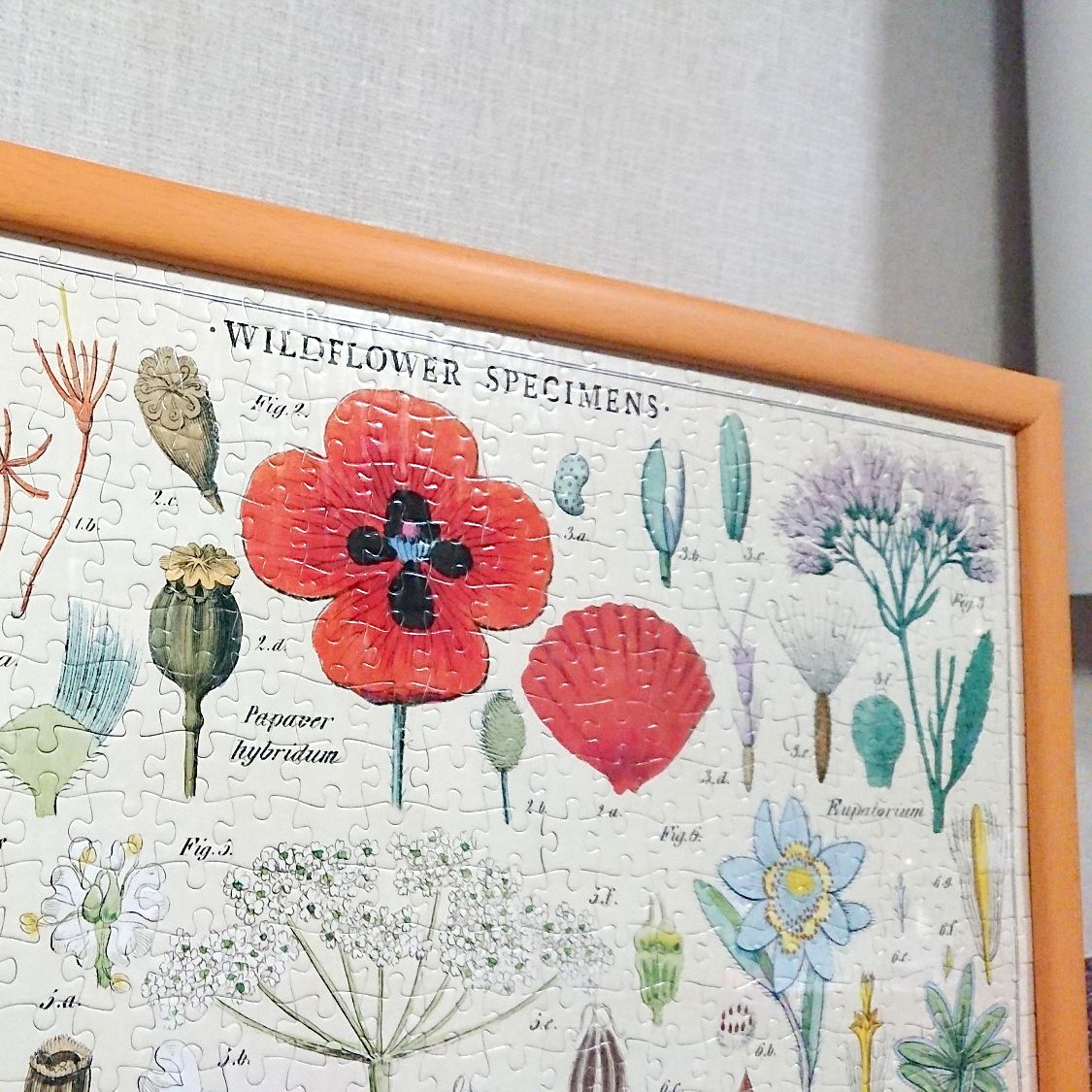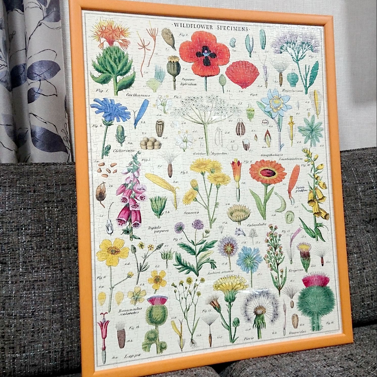 花図鑑のジクソーパズルなんてとても素敵ですね!😆作りながらならじっくり眺められてよく覚えられそうです🌸カラフルな明るいオレンジのフレームが良く似合っています✨
