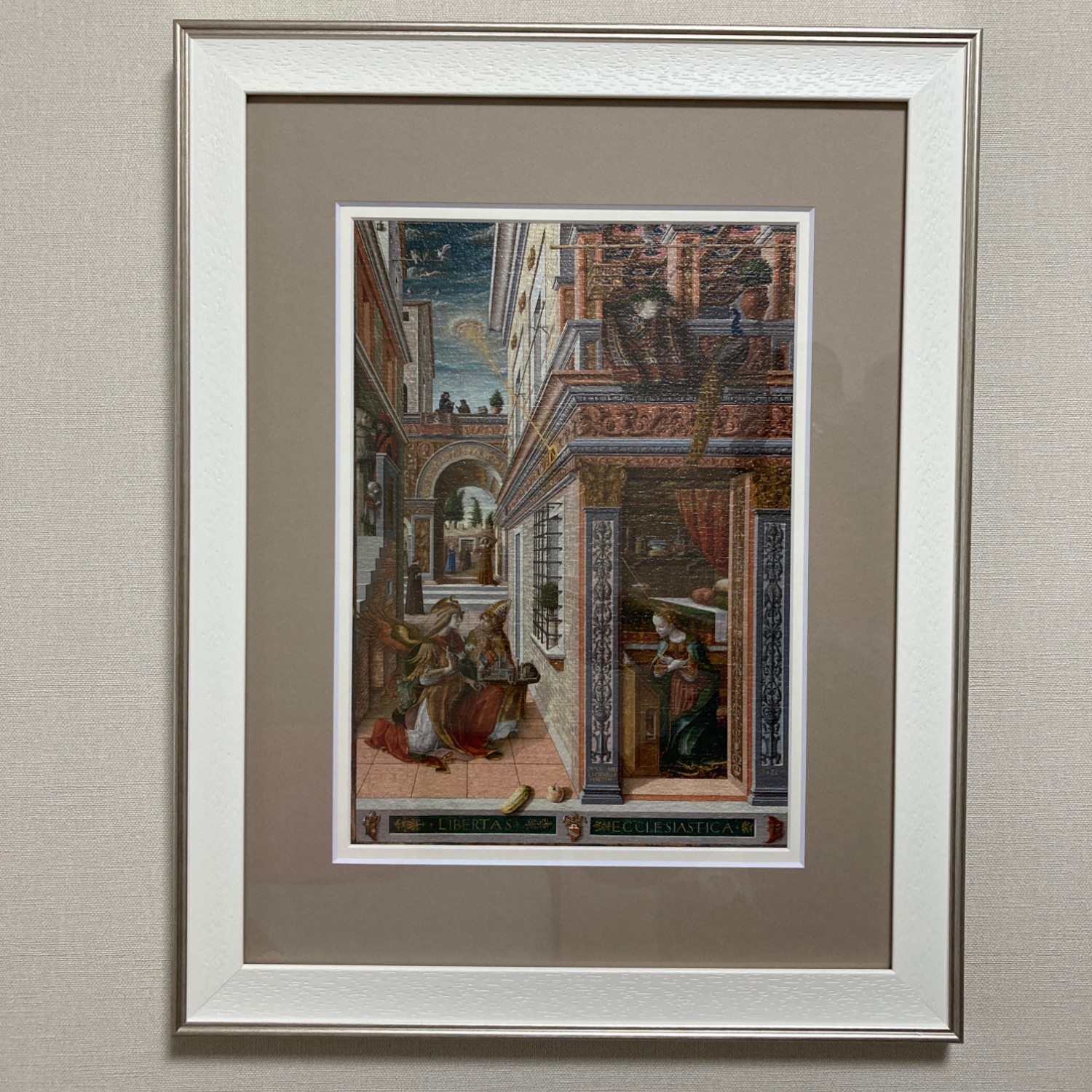 美術展で購入したマット付き額絵に、茶ベージュのマットを重ねて額装しました。
