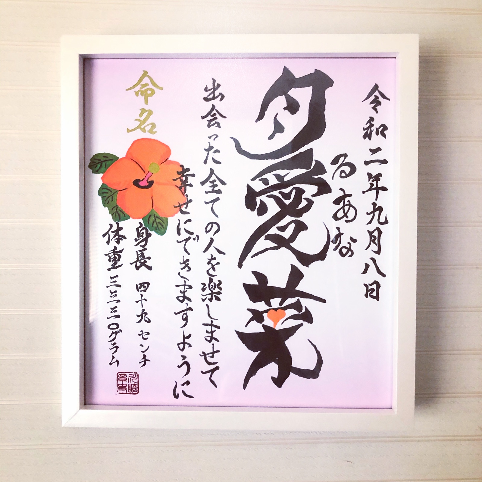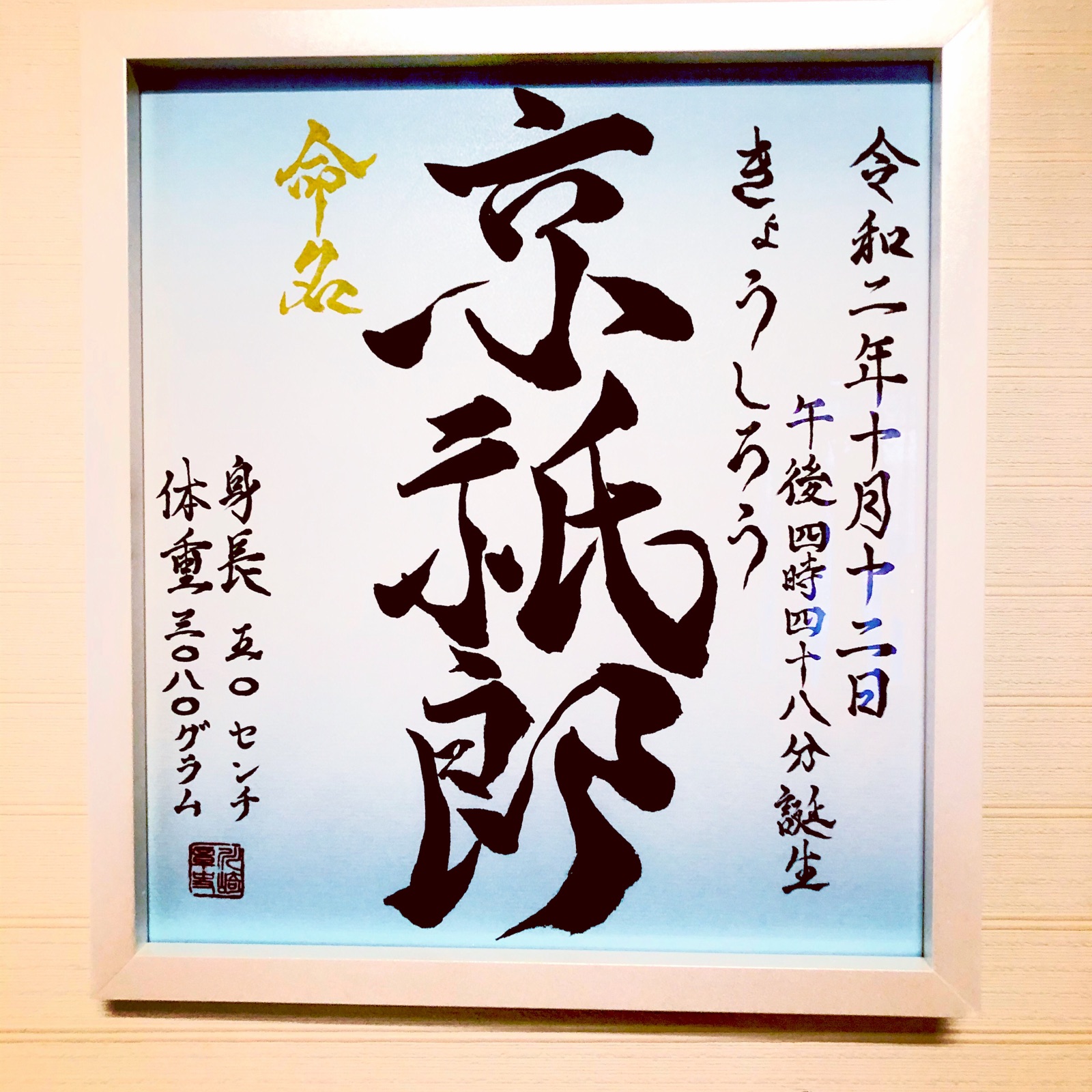 命名書に額装にタカハシ様の額縁には毎度感謝ばかり。 質の高い額縁をいつもありがとうございます!