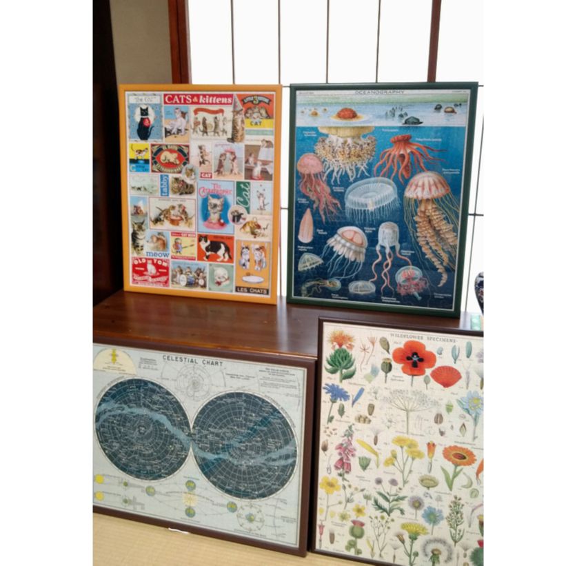 <1000ピースパズル> 海外のジグソーパズルは日本の規格品に合わないため、柄にあわせた色で特注オーダー。 ナチュラルカラーが良かったのですが、廃盤(?)のようでしたので今回はグリーンをチョイス。 次回のパズルが完成したらまたお願いします。