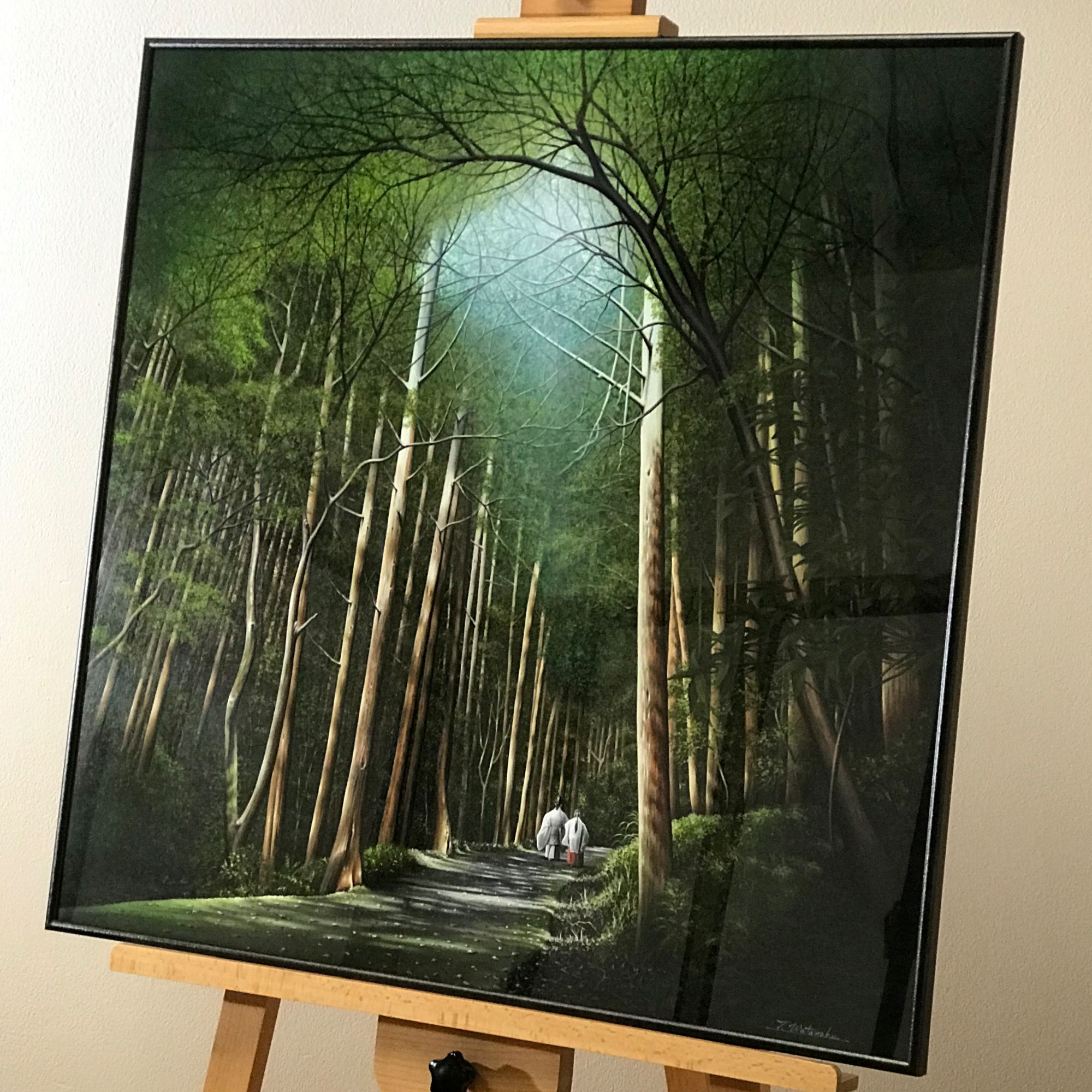 フレーム クーベ /727×727/新宗達/アクリル/特注サイズです。 作品がS20号のサイズなので、その寸法で作っていただきました。 凹凸のあるいぶしの質感の新宗達は、作品をとても引き立ててくれます。 絵画は天の岩戸への参道、不透明水彩で描きました。 ありがとうございます。