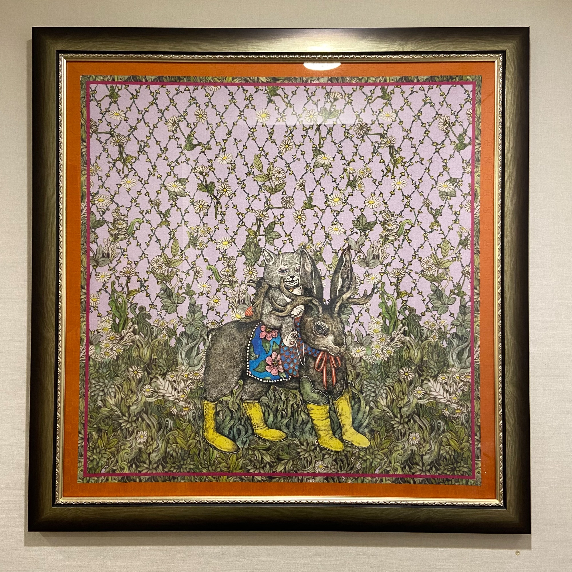 ヒグチユウコさんのGUCCIスカーフを額装していただきました。 とても綺麗に仕上がり大満足です。
