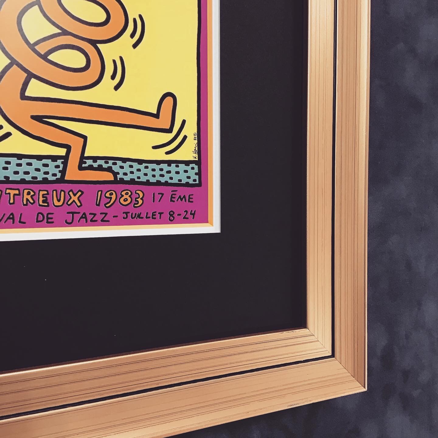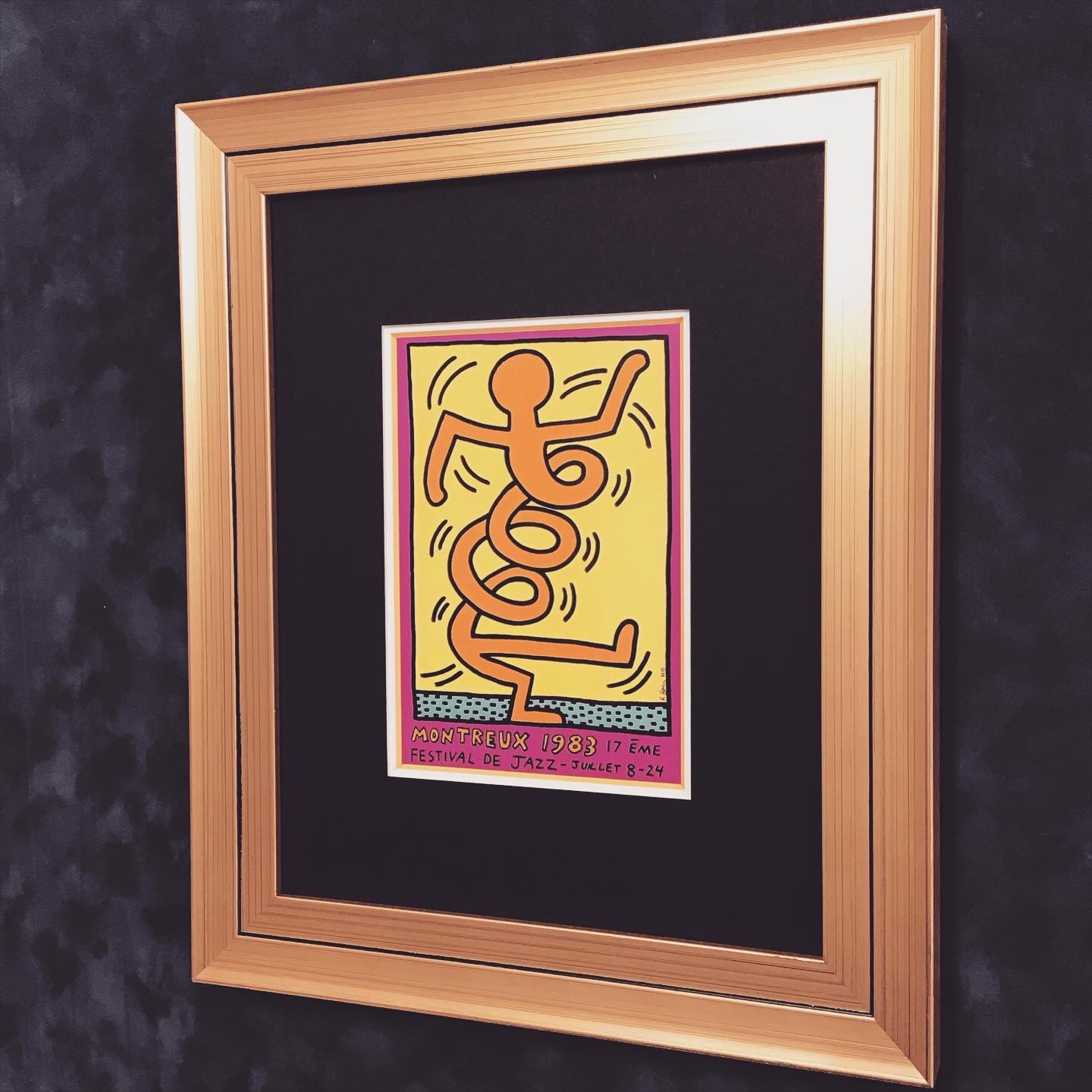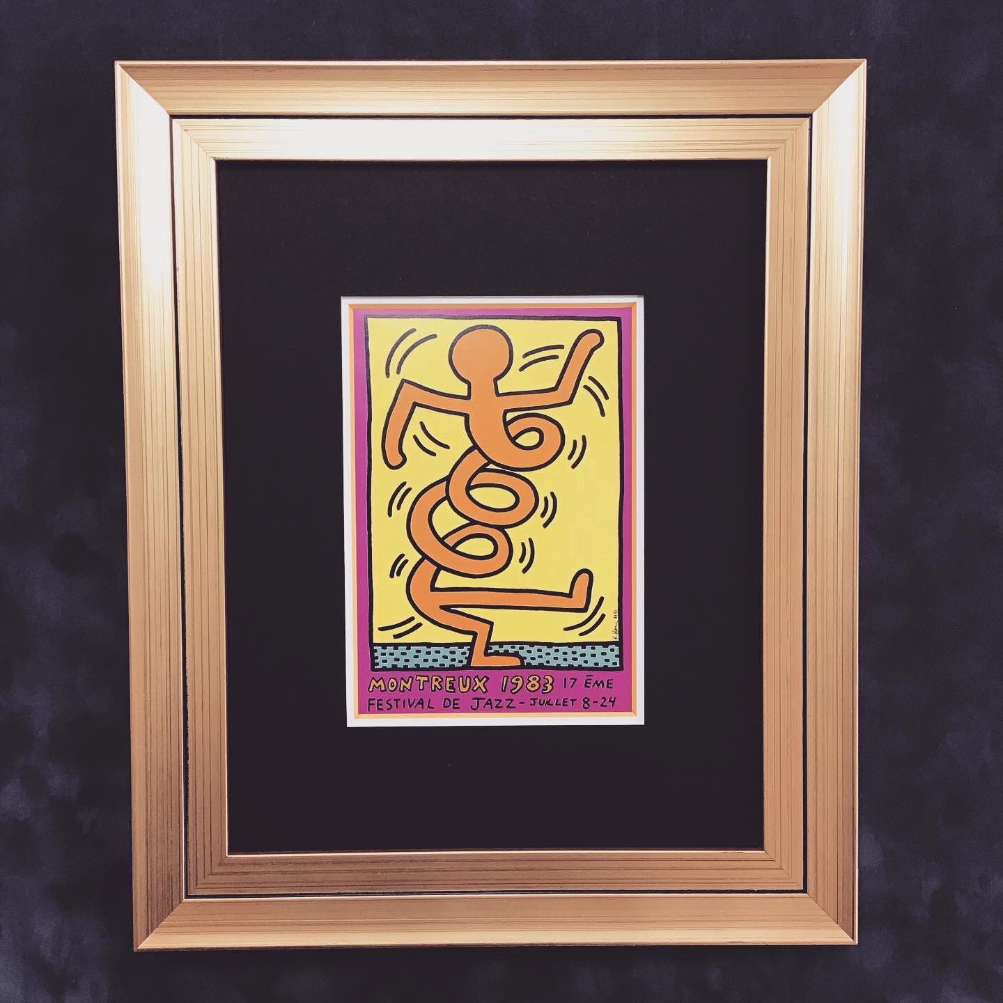 キース・ヘリング「MONTREUX 1983」のポストカードを額装しました! 金のフレームに黒のマットと切り口が黄色のマットを使用しました! #額縁のタカハシ松本店 #額縁のタカハシ #額映え #額縁屋 #額縁店 #額装 #額縁 #額 #額縁アート #額縁職人 #ポストカード #キースへリング #ダブルマット